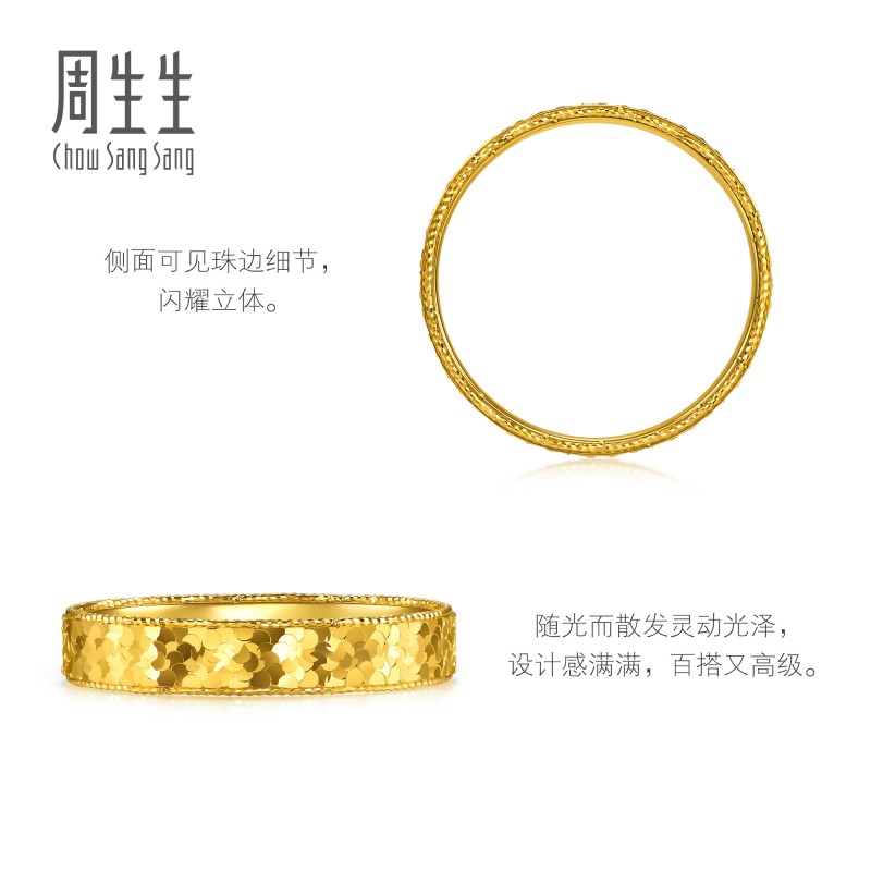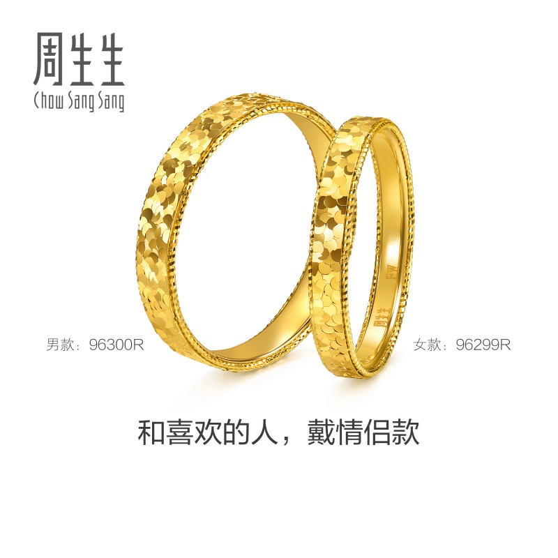 圣诞周生生足金Essence永系列爆闪碎碎金黄金戒指对戒男款96300R