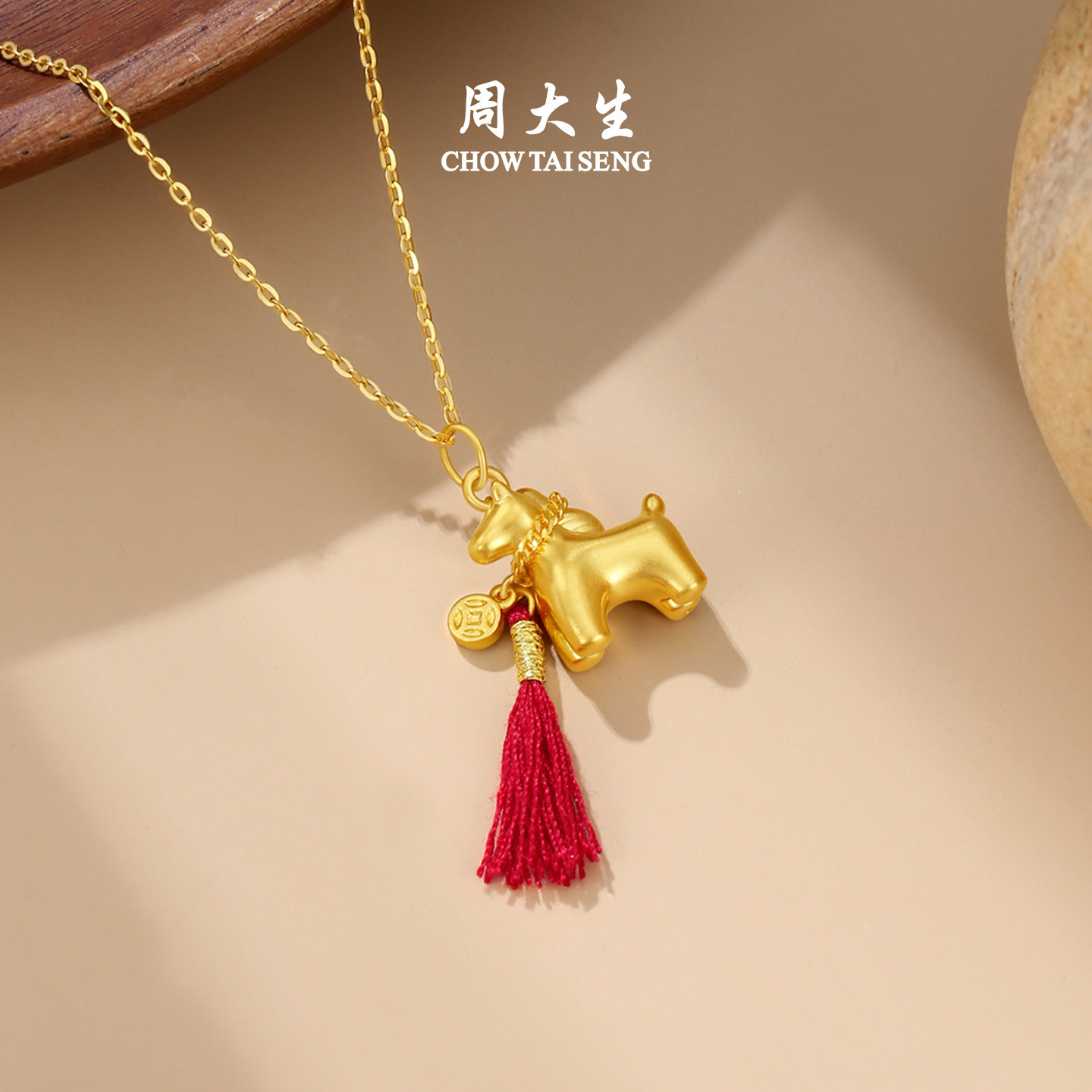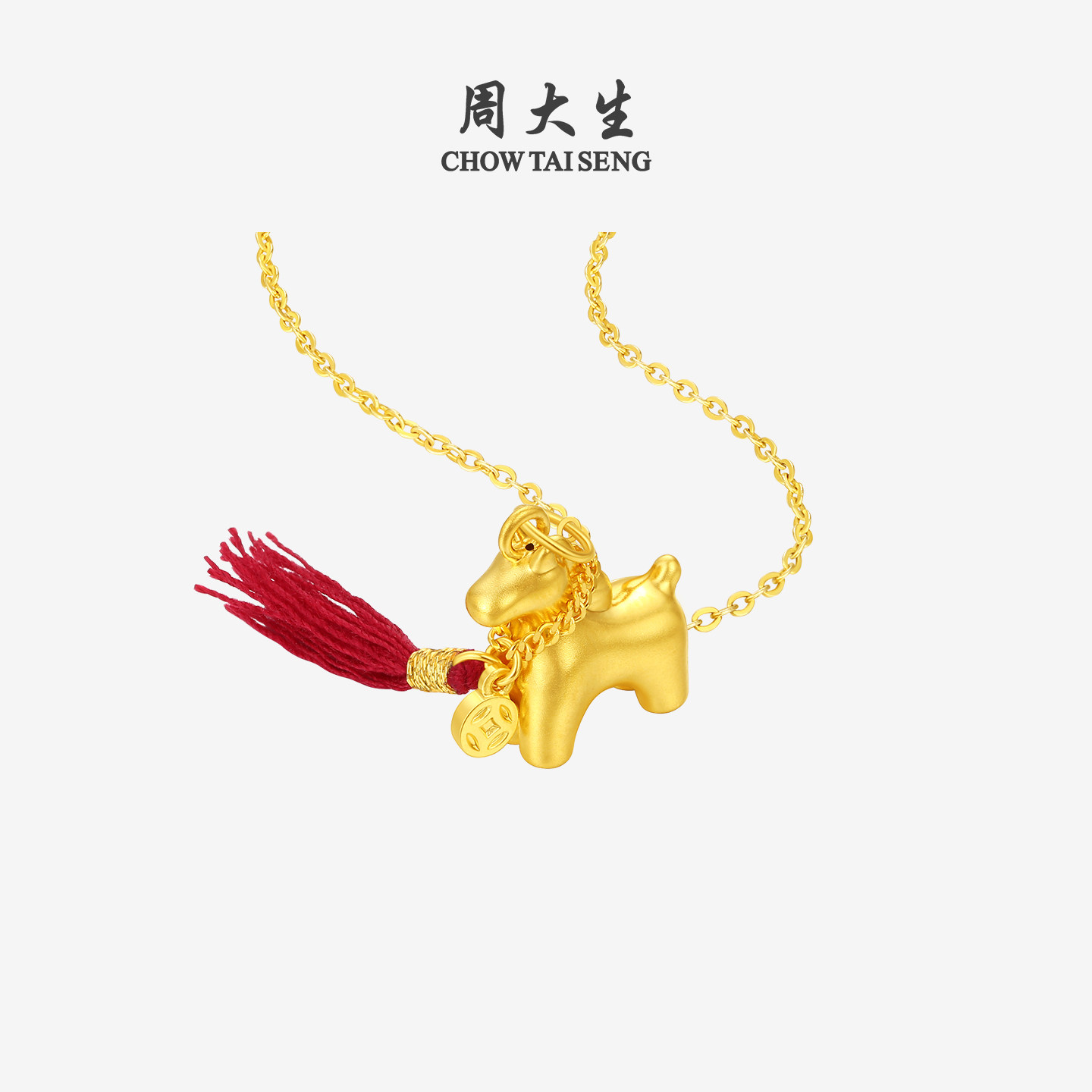 周大生黄金马上有钱吊坠女足金硬金铜钱小马挂坠送女朋友生日礼物