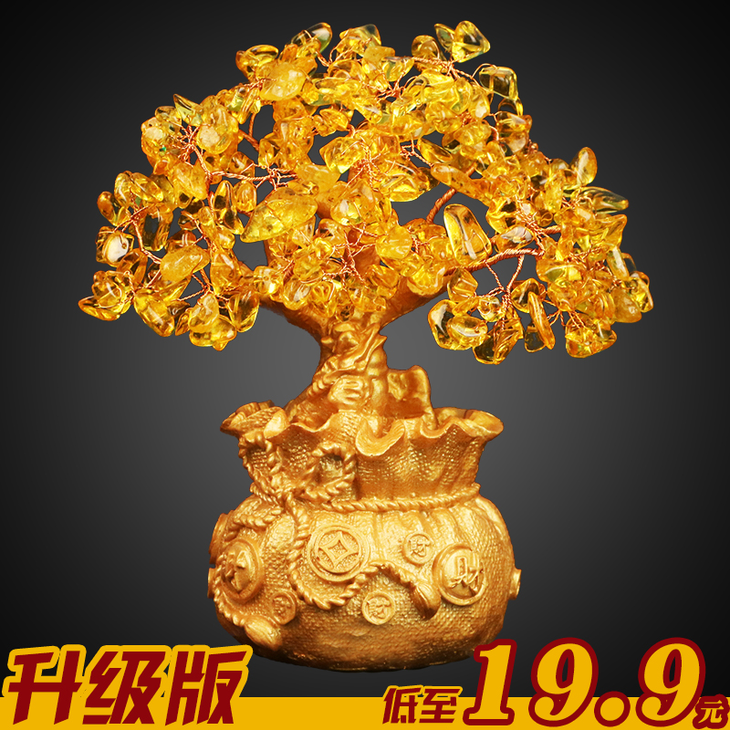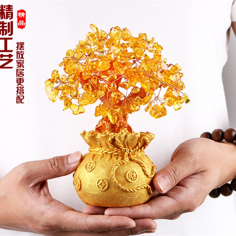 黄水晶摇钱树家居客厅酒柜玄关财神位小招财树摆件开业礼品发财树
