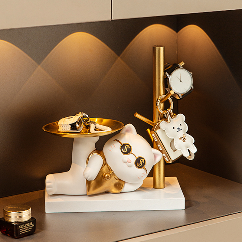 创意招财猫摆件进门口入户鞋柜钥匙收纳客厅玄关置物架乔迁新居礼