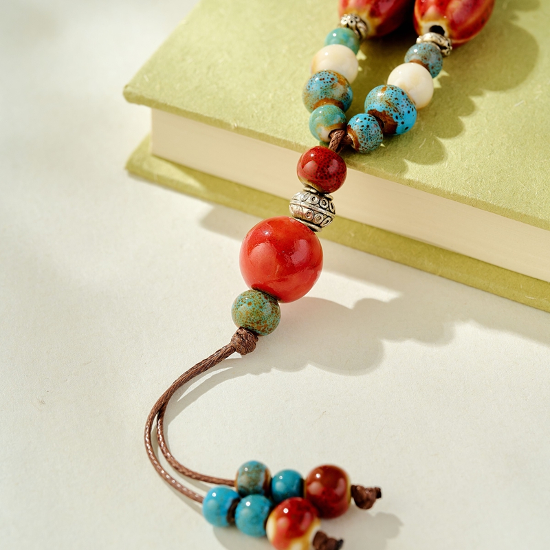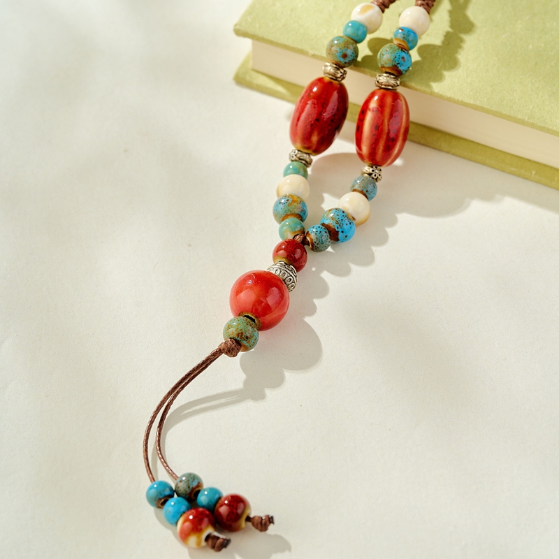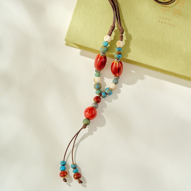 民族风陶瓷项链爆款毛衣链小红书同款饰品国风元素项饰红色长款链
