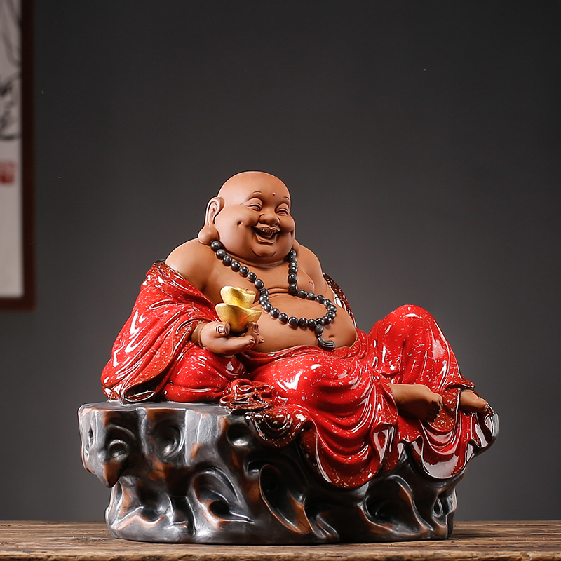 陶瓷大肚弥勒佛佛像摆件大号招财笑佛中式家居客厅玄关办公室装饰