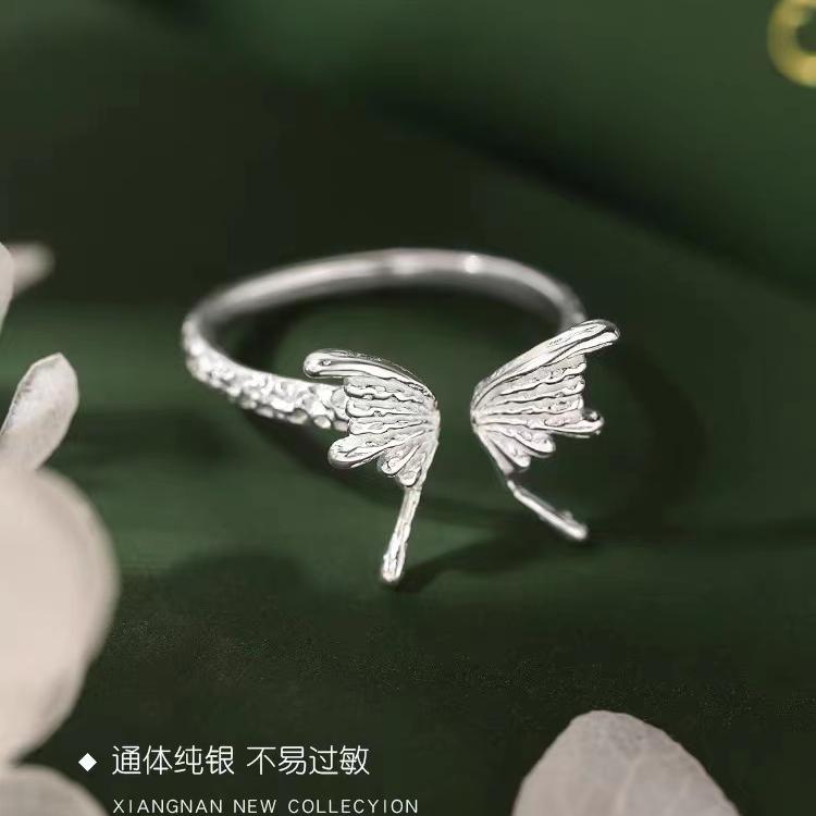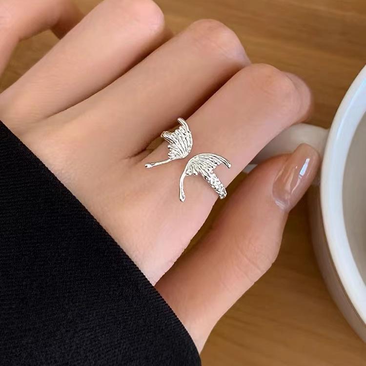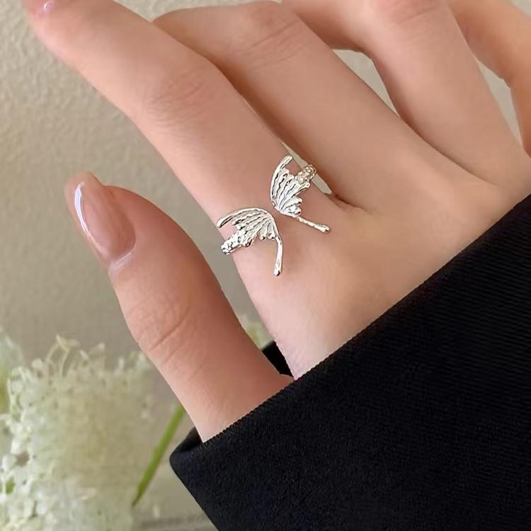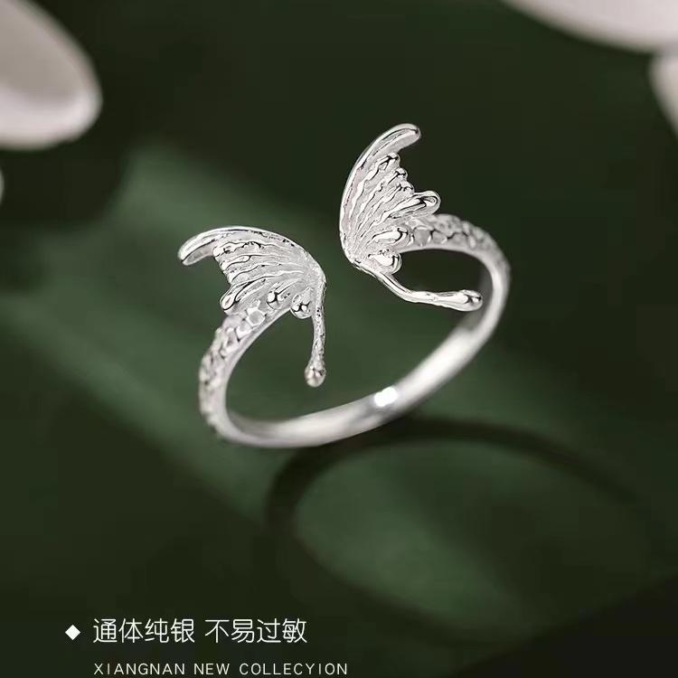 925纯银蝴蝶戒指女小众设计开口戒轻奢高级感食指戒素圈