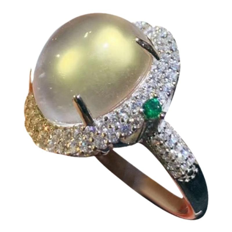 s925纯银配钻石镶嵌冰种水晶石大颗粒蛋面戒指女款手饰清新时尚潮