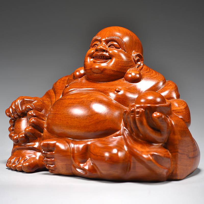 花梨木雕弥勒佛像摆件实木质元宝笑佛家居客厅玄关装饰红木工艺品