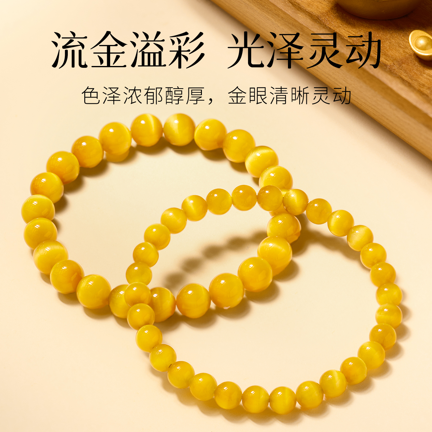 庆祥泰天然金虎眼石手串女款官方旗舰店巴西猫眼水晶招财吸金手链
