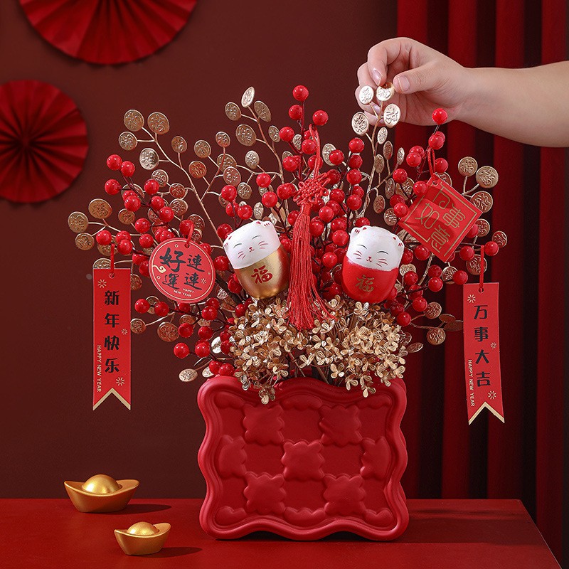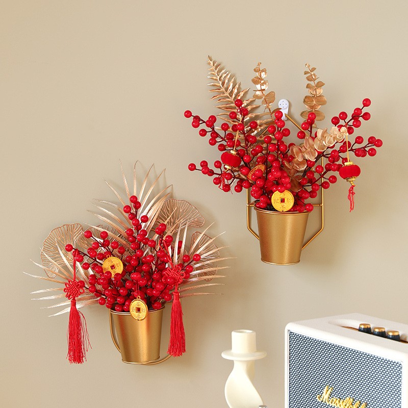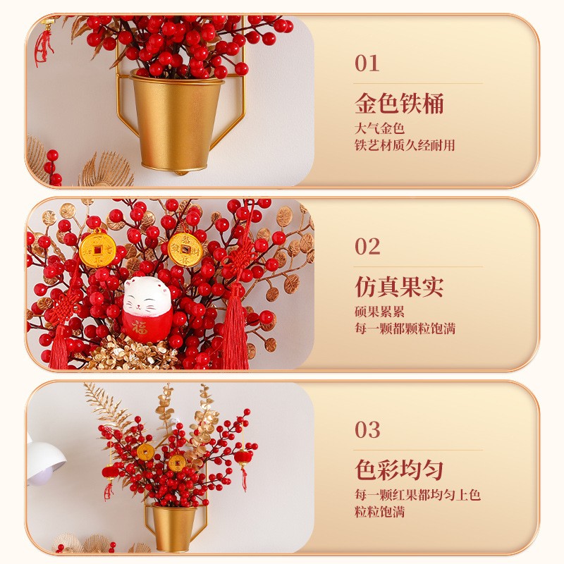 仿真果假花小红果尤加利冬青果年宵花家居装饰摆件红浆果定制