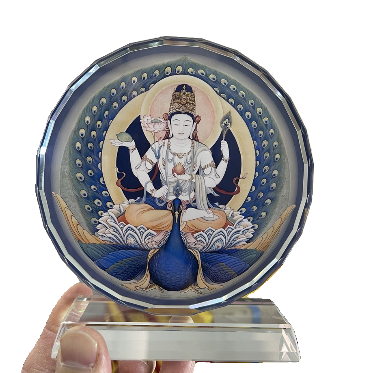 结缘孔雀明王佛母画像水晶摆件工艺品桌面摆设可搭配发光灯座