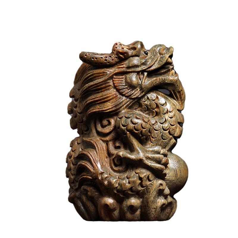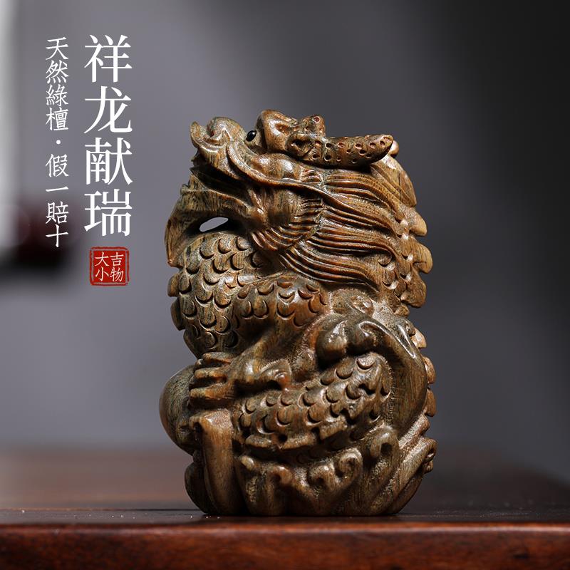 天然绿檀木雕祥龙献瑞创意文玩手把件生肖龙饰品桌面摆件小挂件