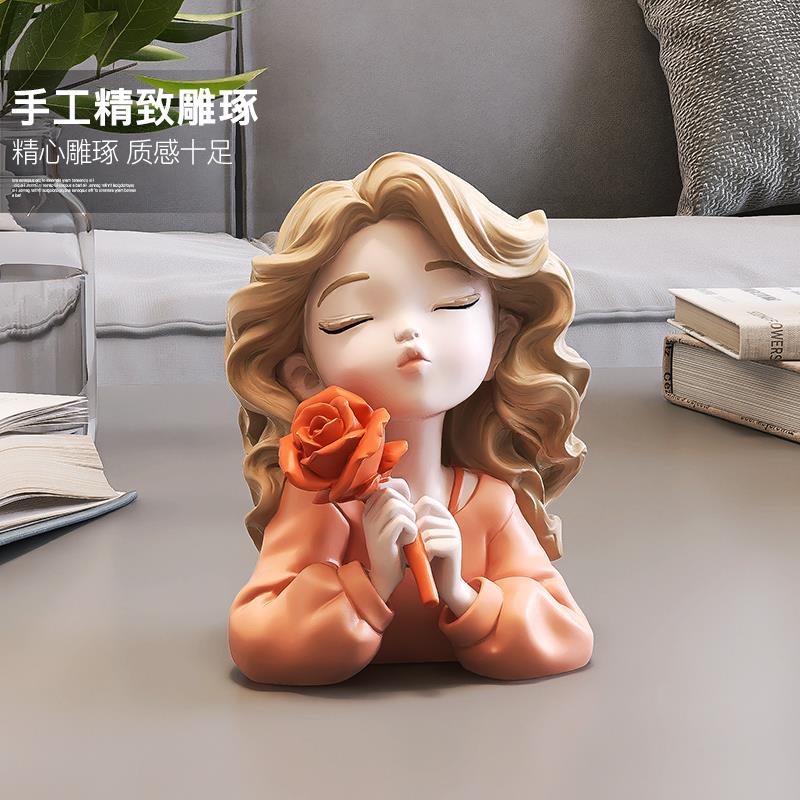 可爱捧花女孩摆件轻奢高档客厅电视酒柜办公室桌面装饰品生日礼物