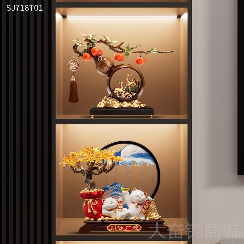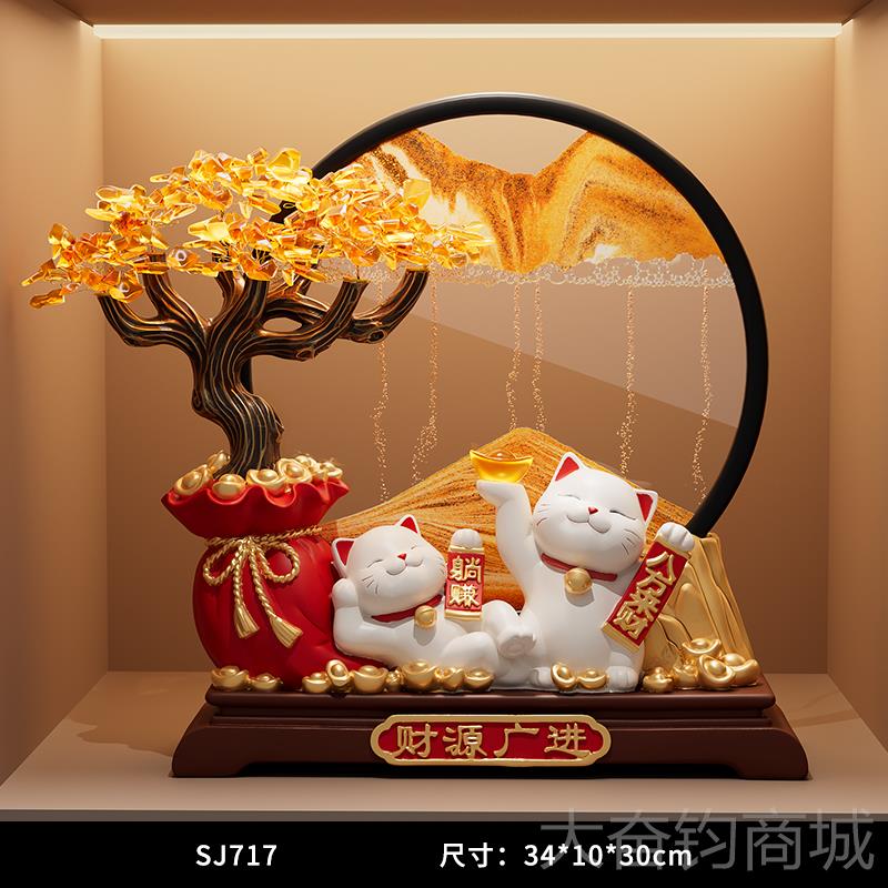 正品开财树流发沙画招财猫摆子件客厅装饰新房搬家礼物乔迁新居业