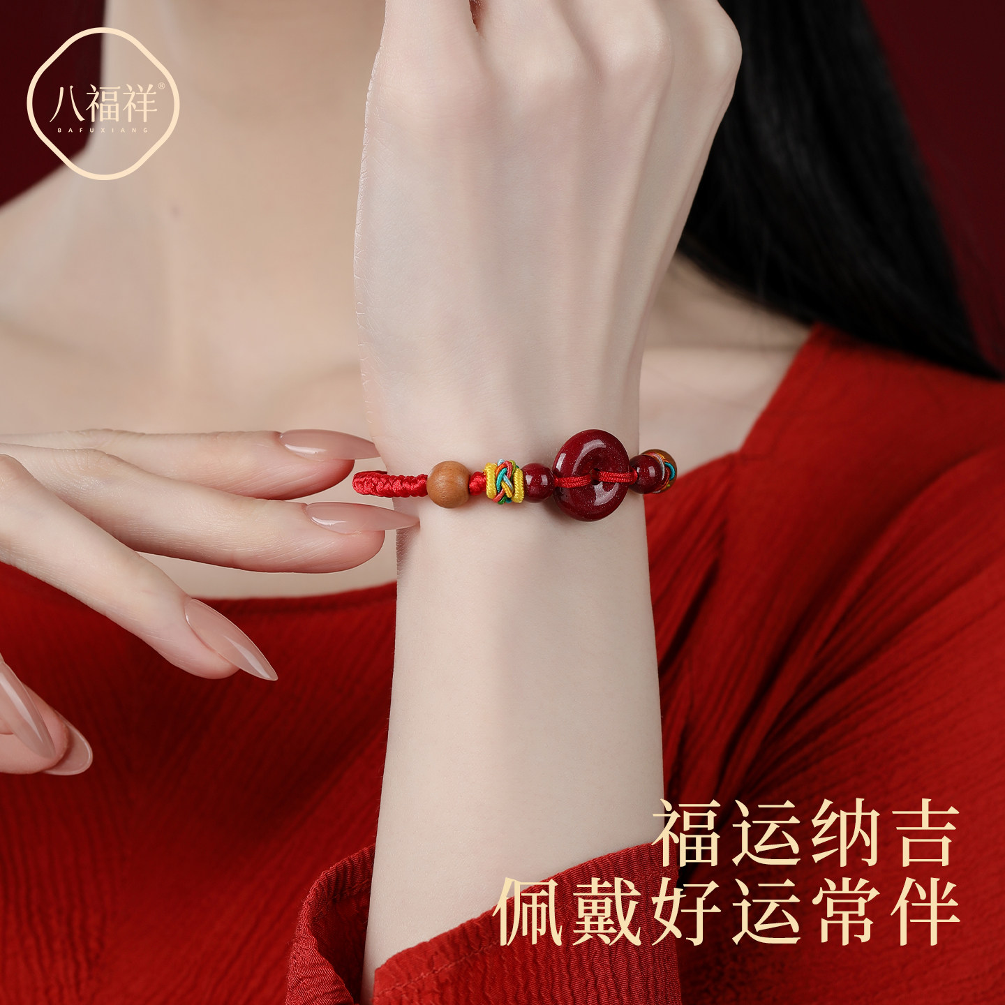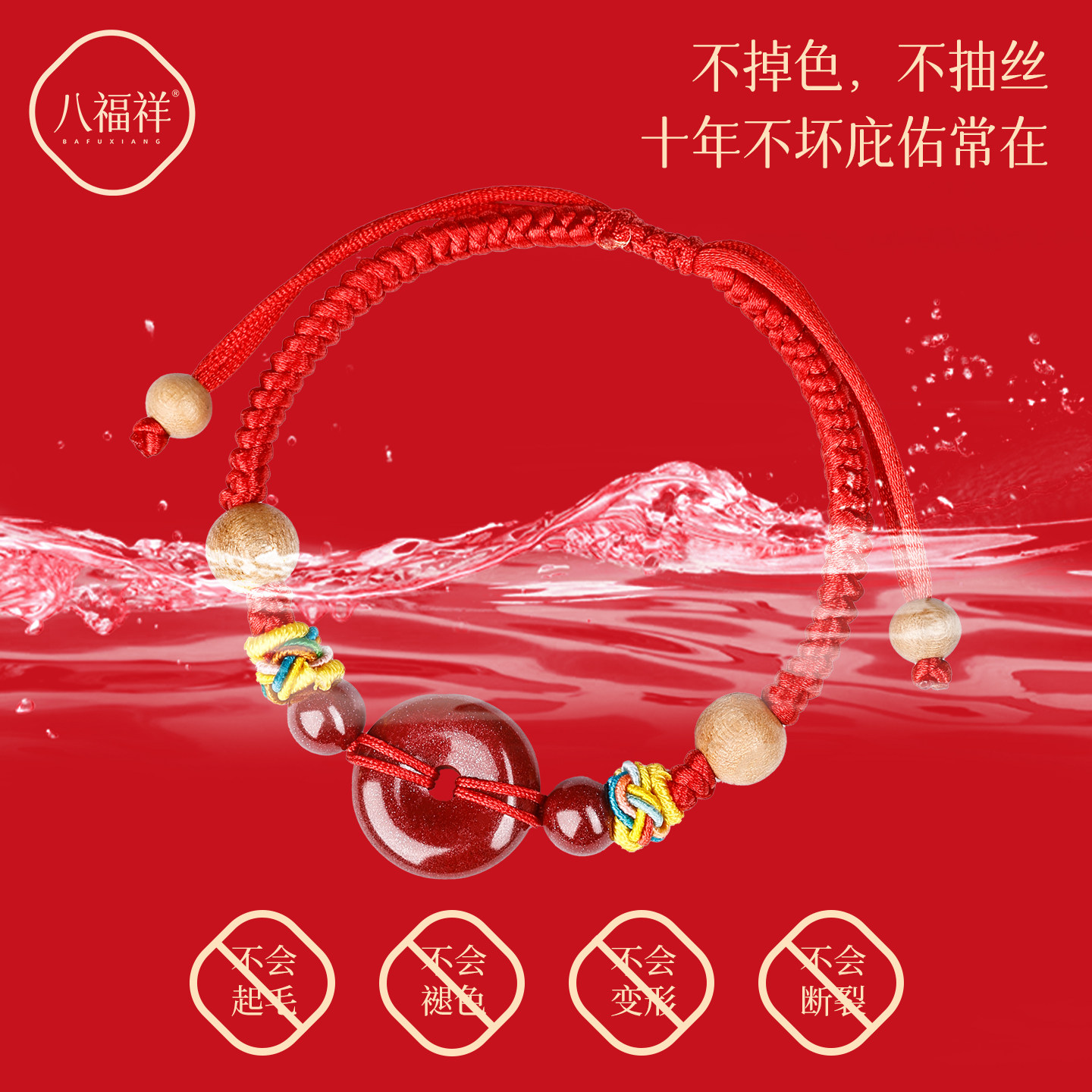 普陀山朱砂平安扣红绳手链手工编织绳红色手绳儿童婴儿宝宝护身符