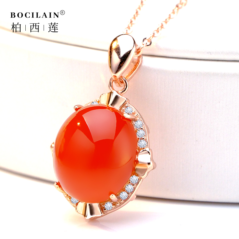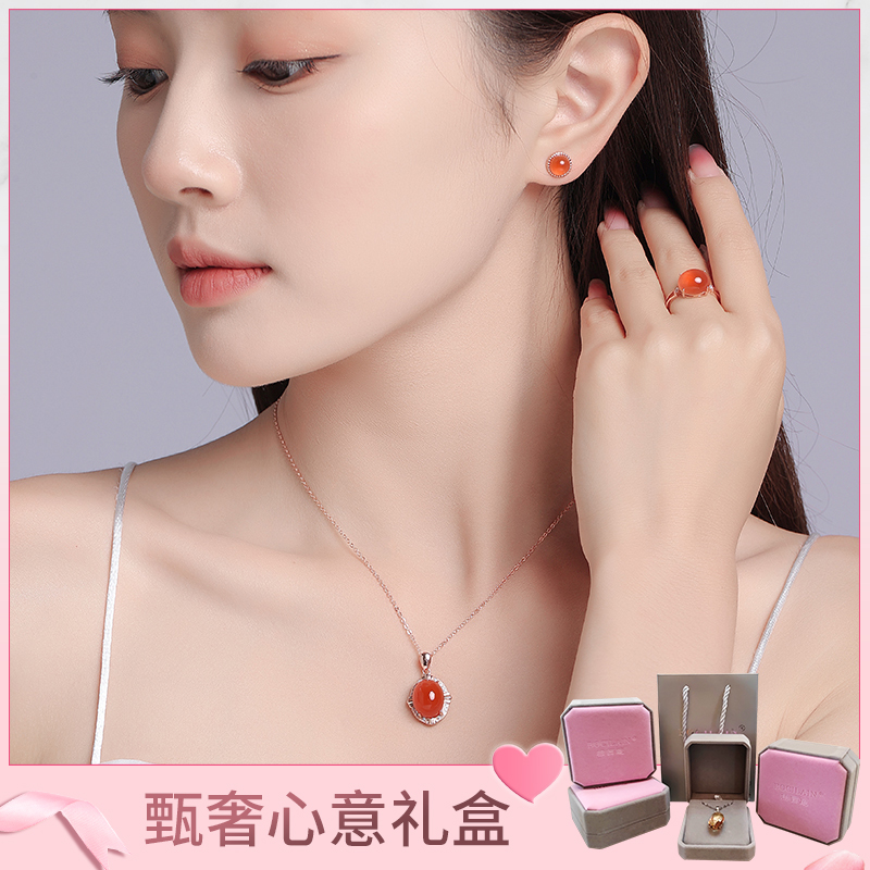 天然保山南红原矿冰红玛瑙项链玛瑙吊坠锁骨链女S925纯银生日礼物