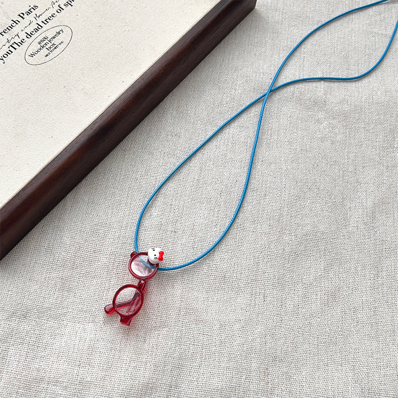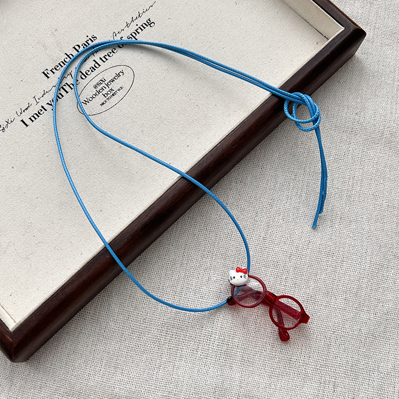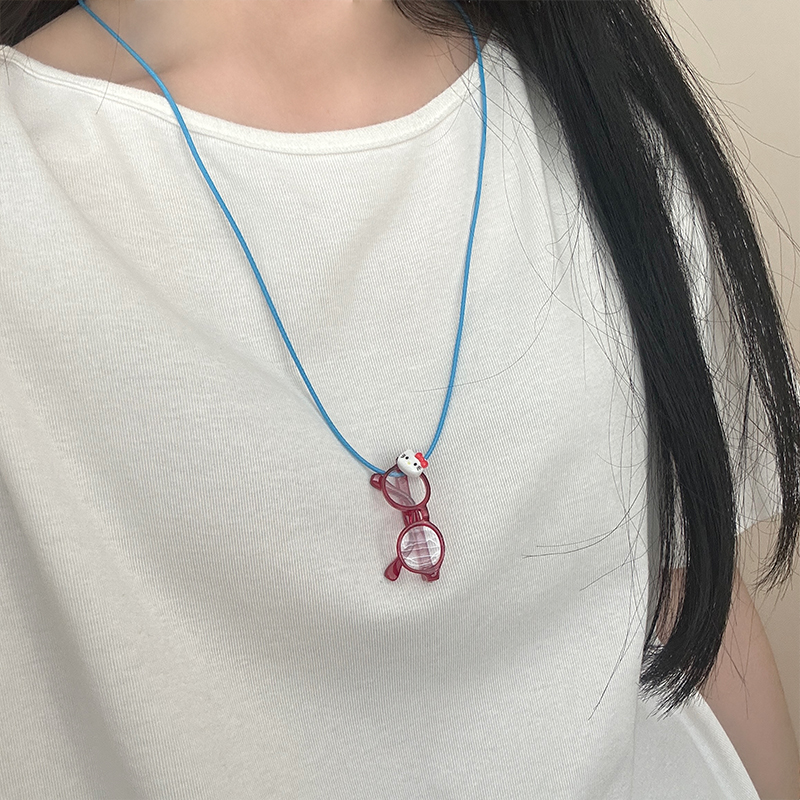 眼镜KT猫吊坠项链女创意可爱迷你挂件简约长款颈链小众挂脖配饰品