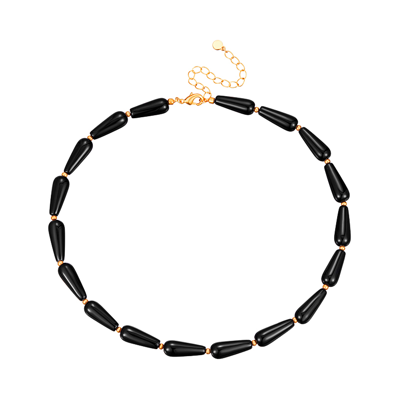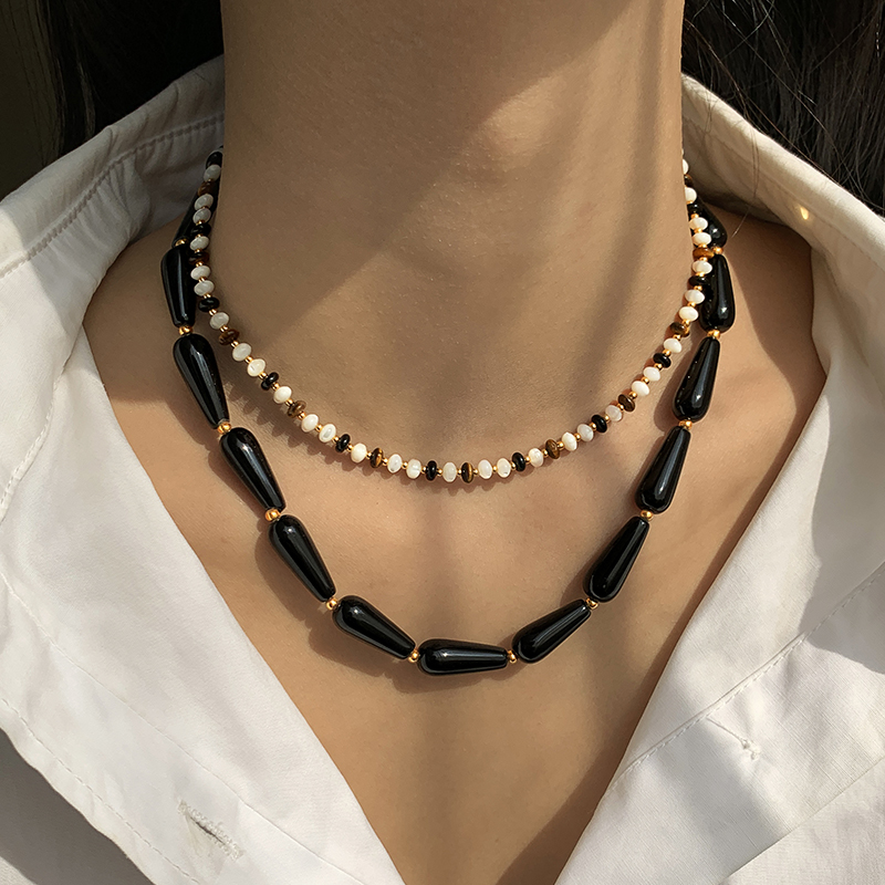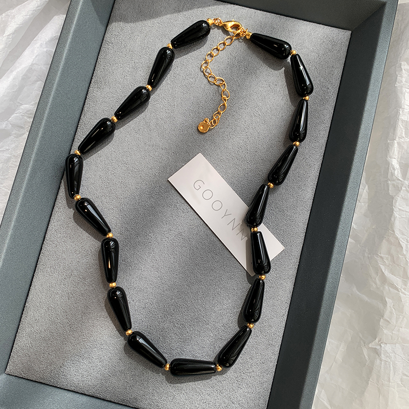 欧美黑色玛瑙串珠项链女轻奢高级感大气高档独特秋冬锁骨链毛衣链