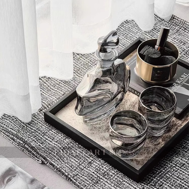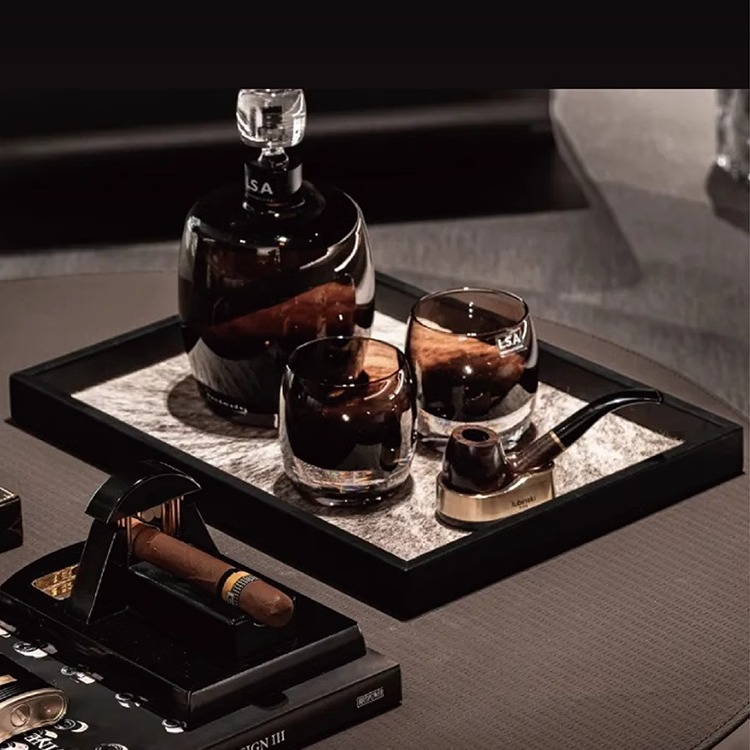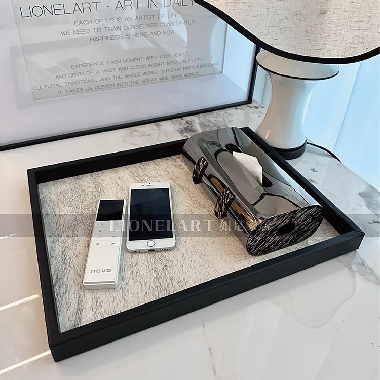 如是皮边进口真皮托盘中古托盘客厅卧室餐桌玄关收纳礼品礼物