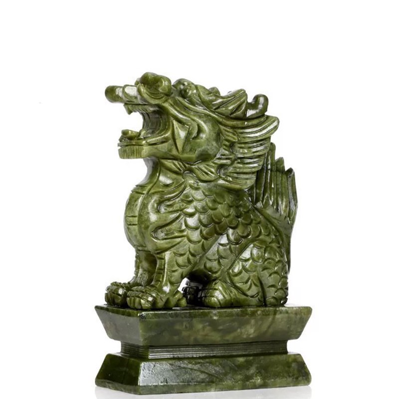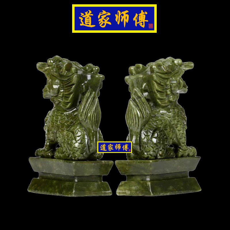 道家师傅 南g玉石绿色麒麟摆件一对 客厅摆件大号 办公室礼品 包