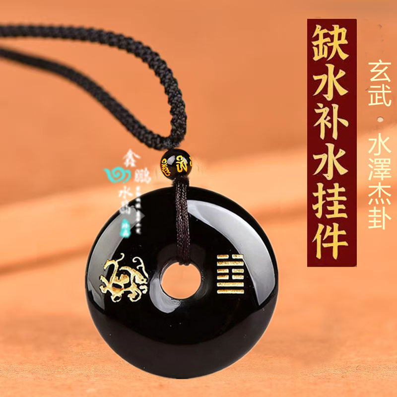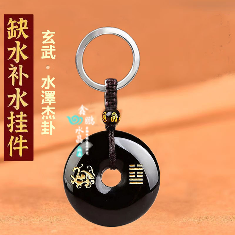 天然黑曜石吊坠补水玄武水泽节平安扣挂件钥匙扣五行属水的饰品
