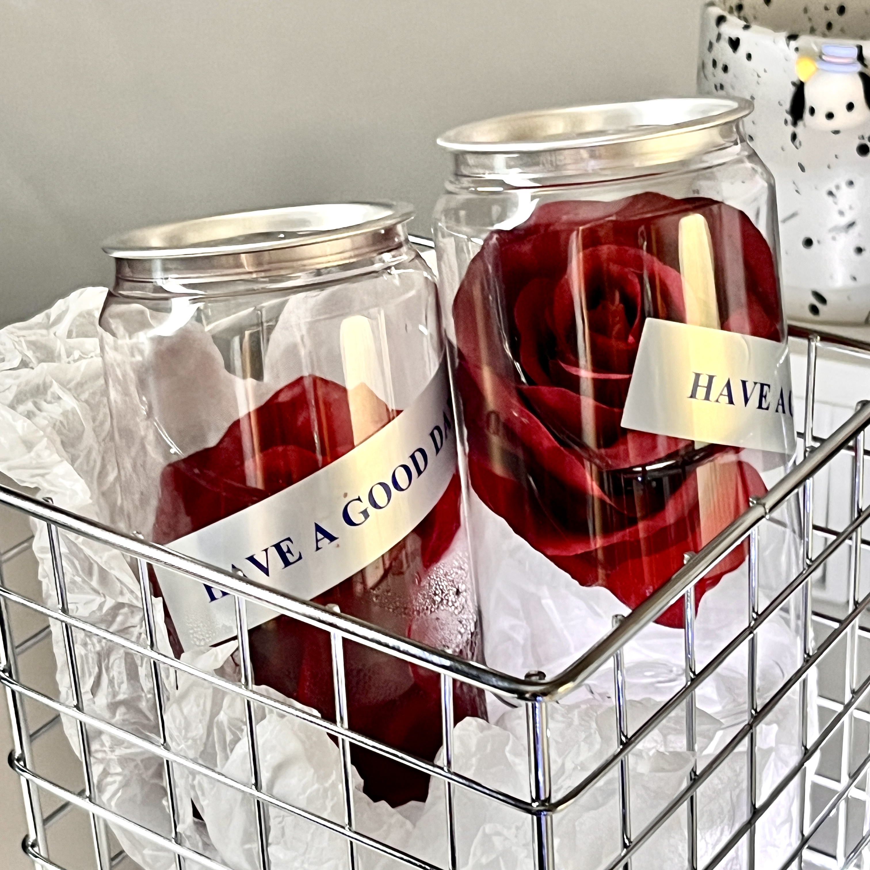冰封玫瑰花朵透明易拉罐桌面装饰摆件仪式感礼品纪念日装饰品束