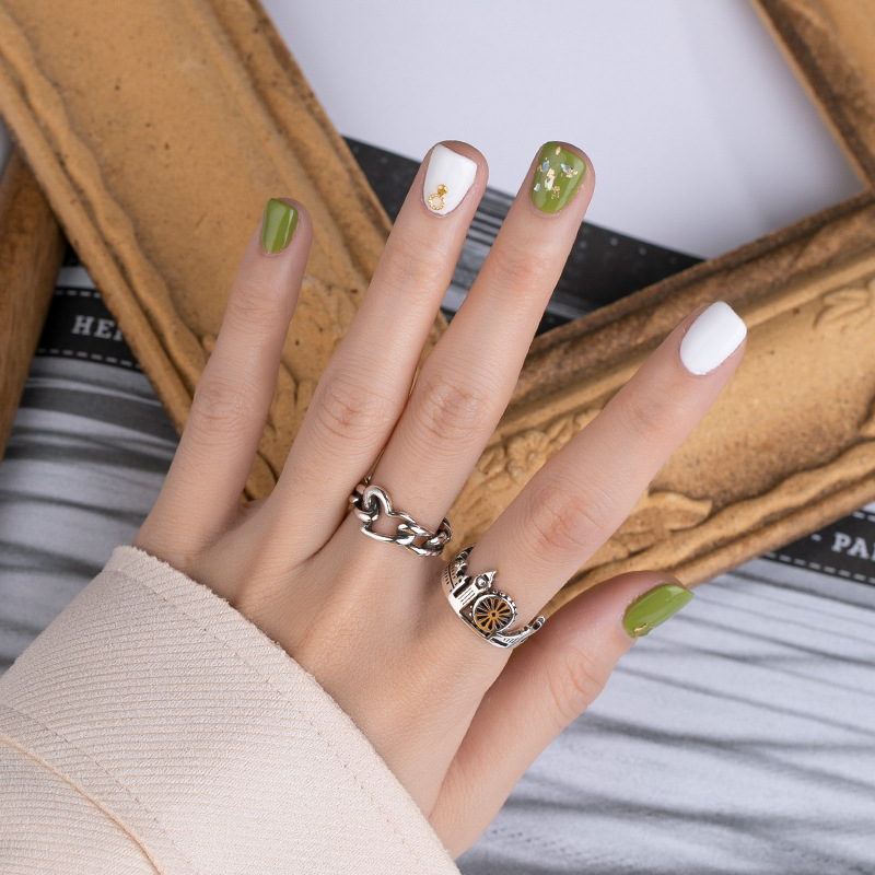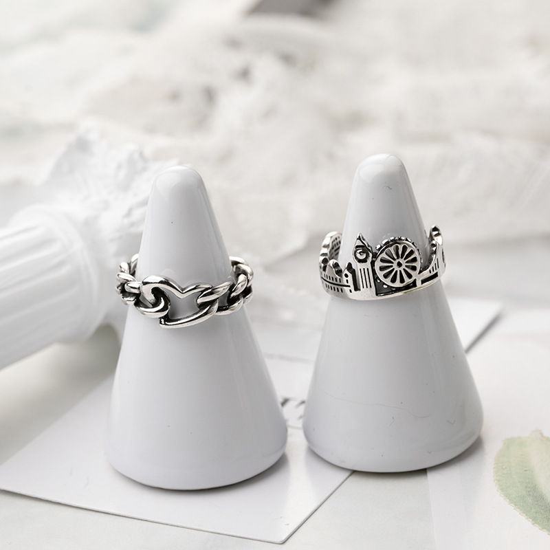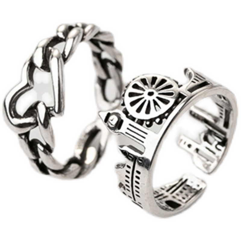 925镀银不掉色城堡链条爱心时尚简约复古潮流冷淡风做旧开口戒指