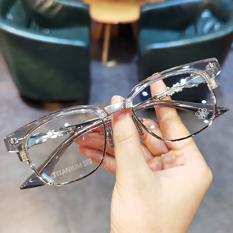 简丹萝心眼镜框男女潮复古大脸半框百搭超轻钛架近视眼镜架平光