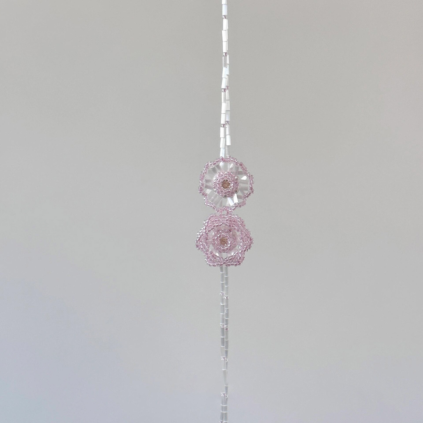 超仙温柔百搭薄雾粉花朵串珠项链女款2025新款轻奢小众精致锁骨链