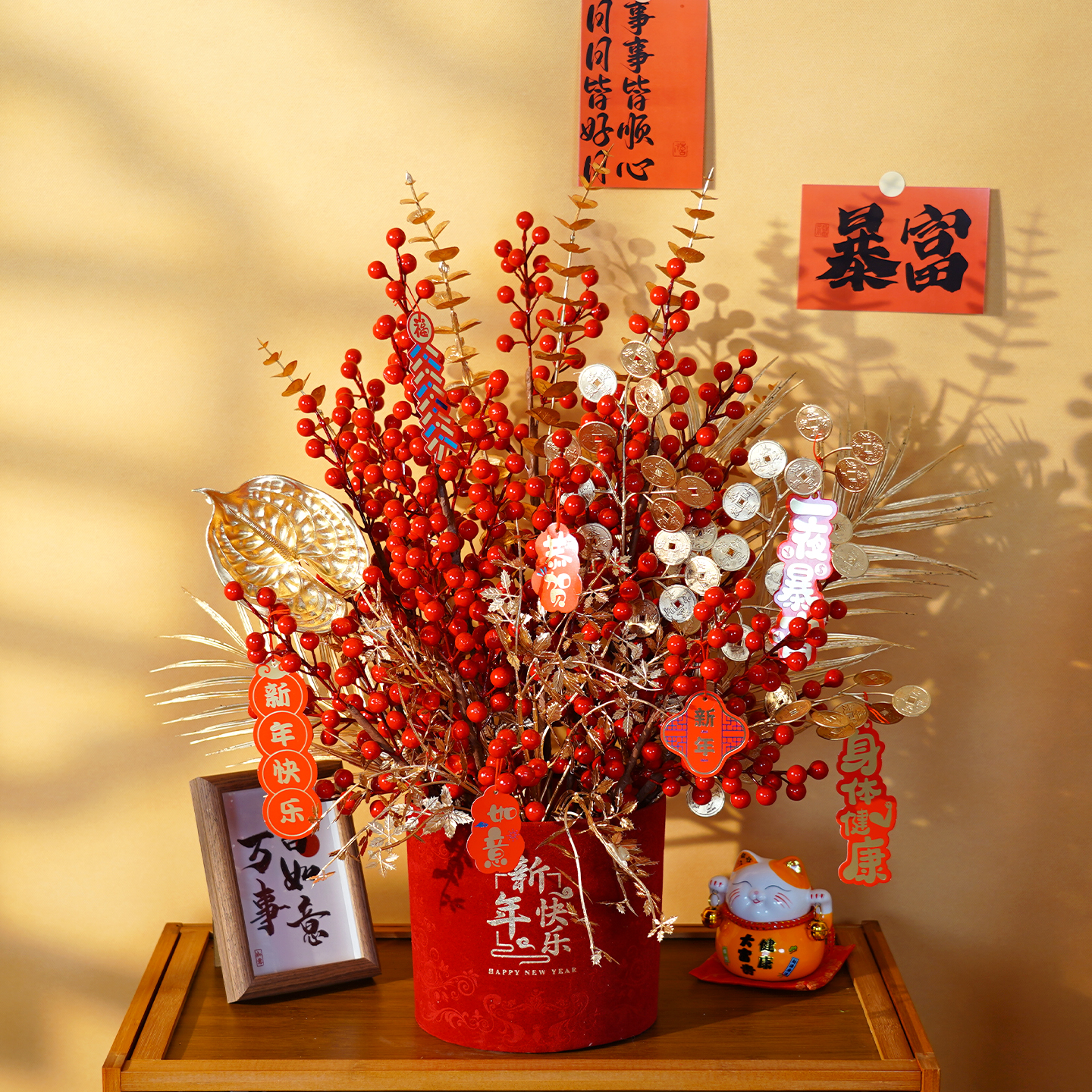 2025新款发财果福桶花结婚摆件装饰品插花客厅布置假花仿真花摆设