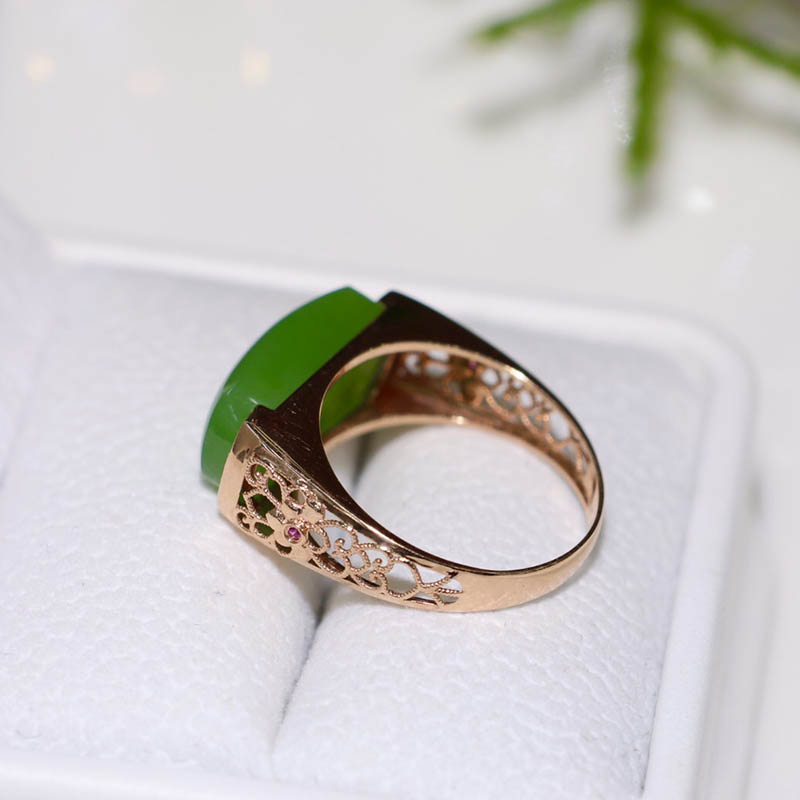 618促销天然和田玉戒指女苹果绿碧玉马鞍镶嵌18k金指环送老婆礼物