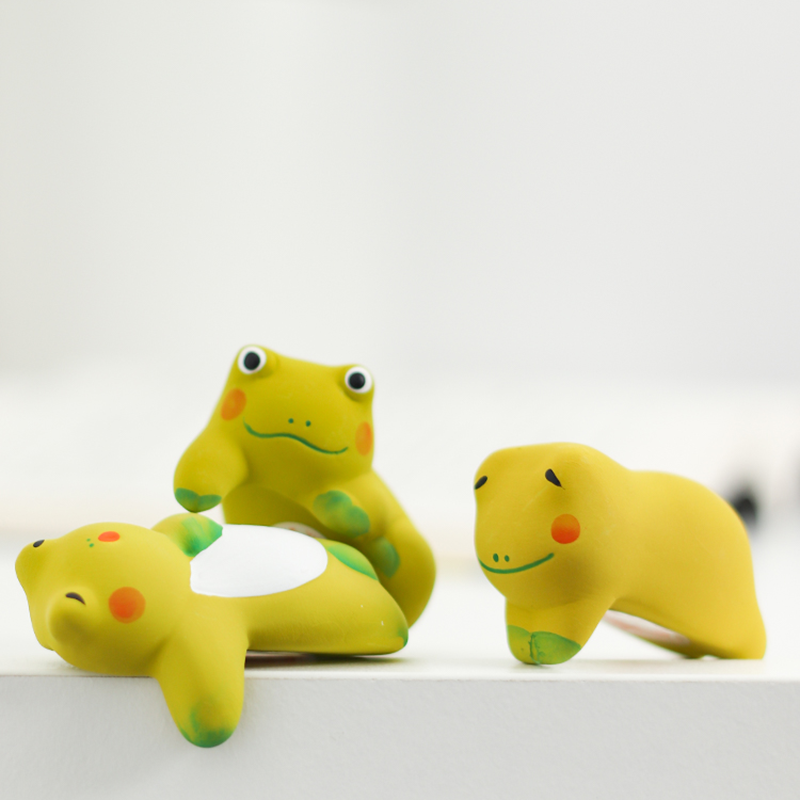日本龙虎堂可爱猫咪兔子摆件手绘陶制办公室屏幕创意摆件车载摆件