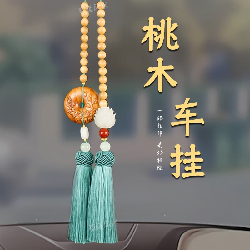 桃木莲花平安扣汽车挂件车内车载后视镜吊饰男女高档创意国风吊坠
