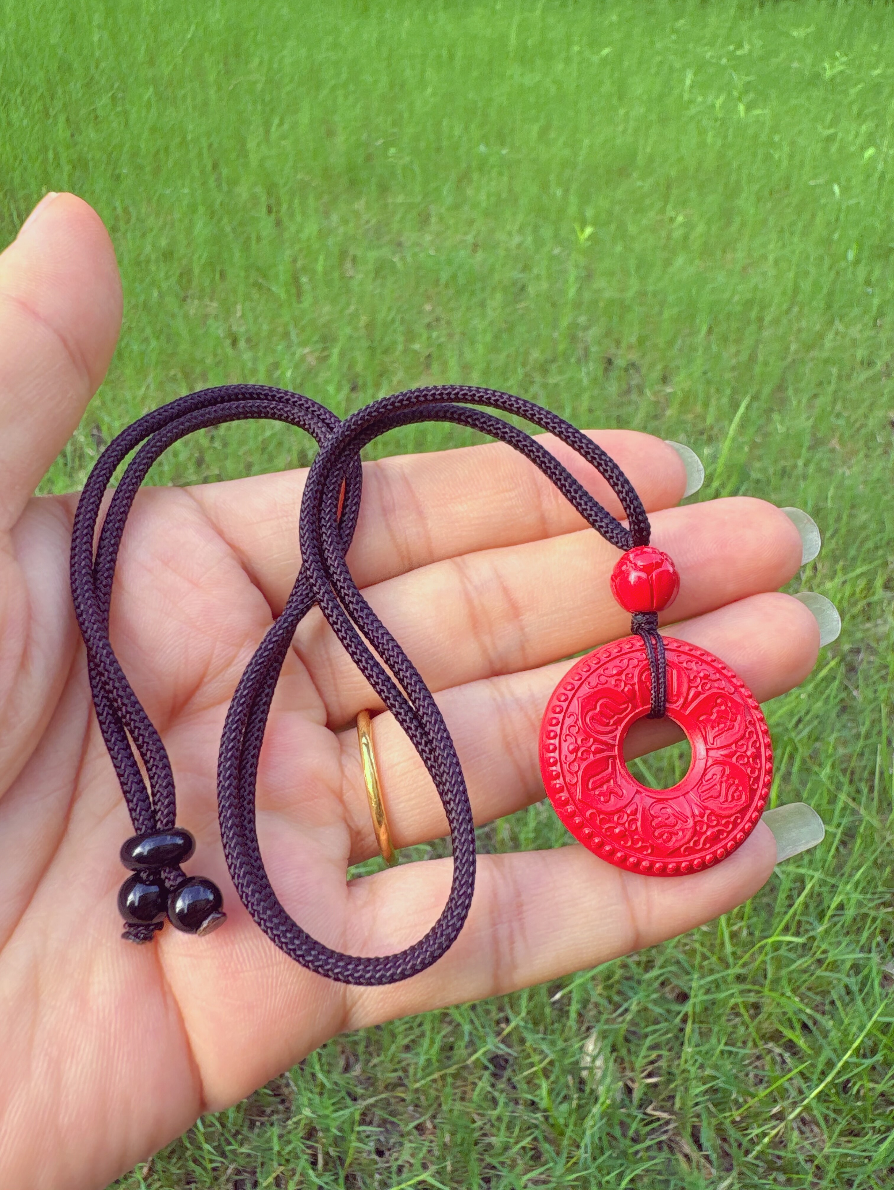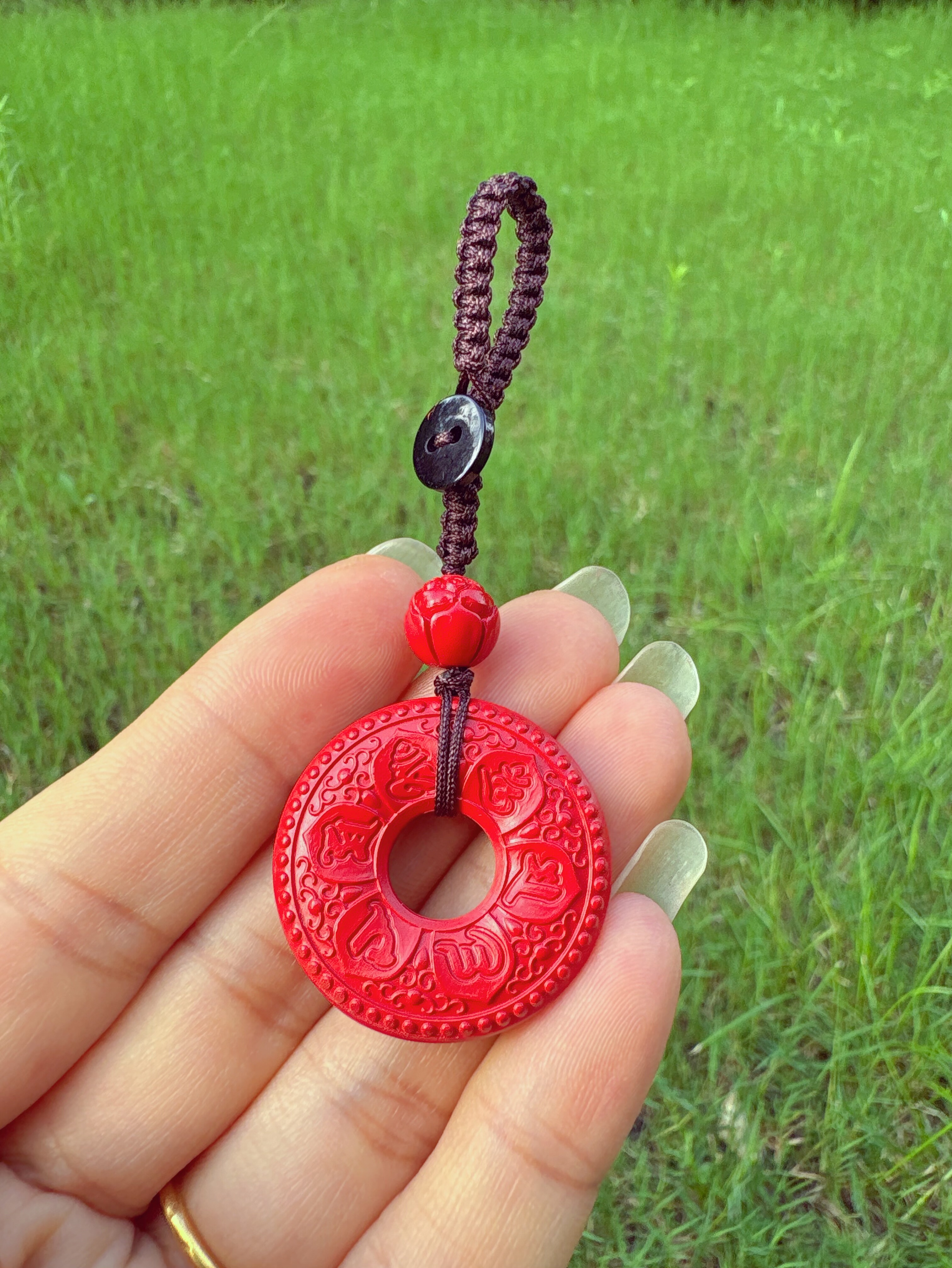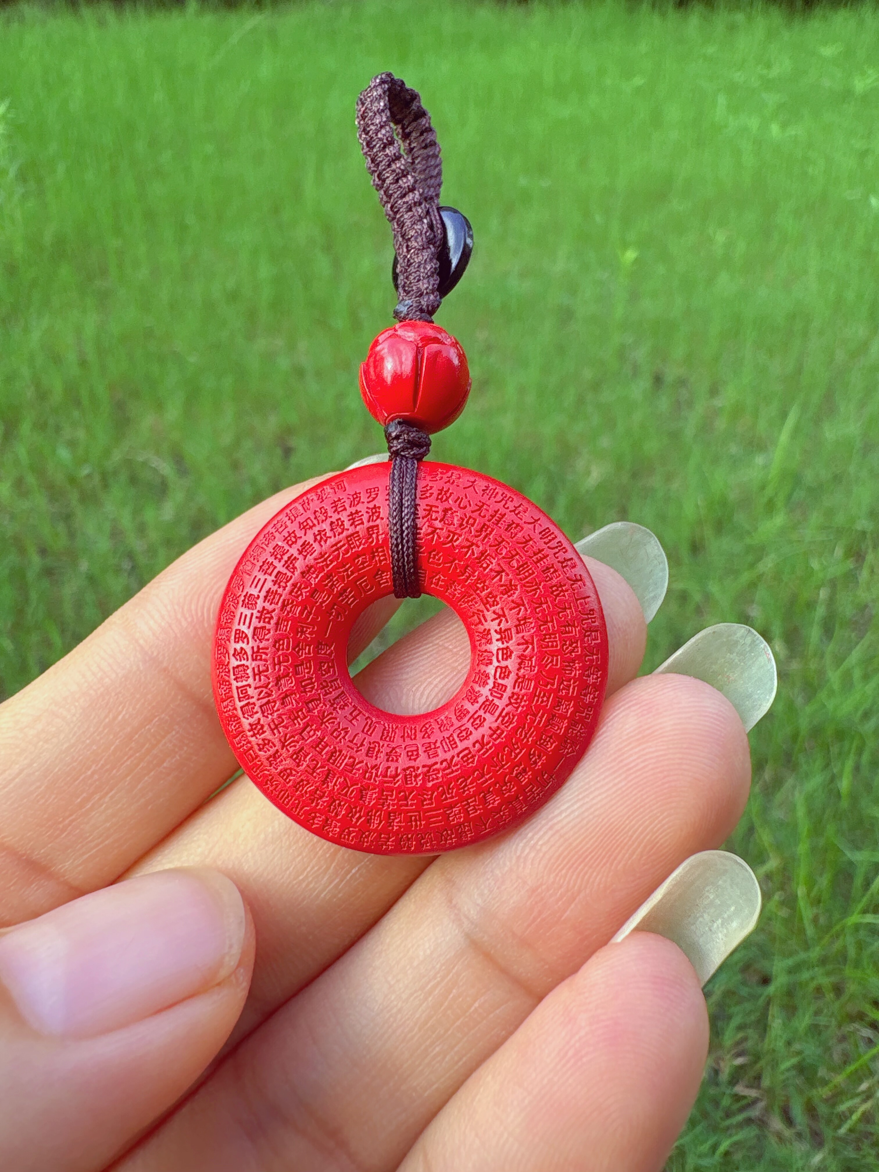 保真朱砂红砂心经平安扣六字箴言吊坠项链挂件本命年护身包钥匙扣