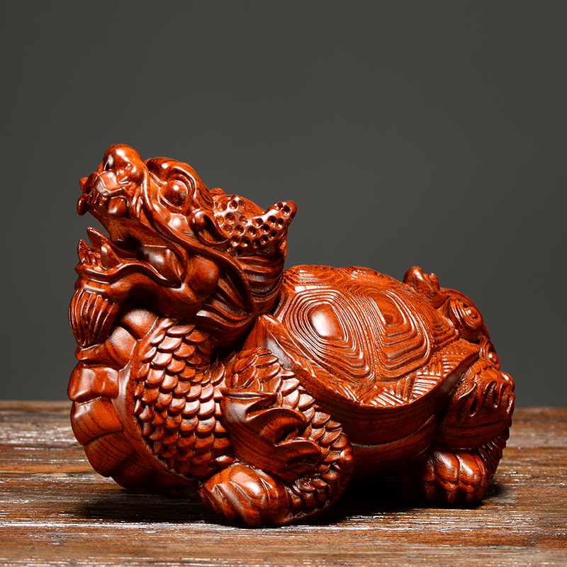 花梨木雕龙龟摆件实木质龙头龟玄武家居客厅办公室装饰红木工艺品