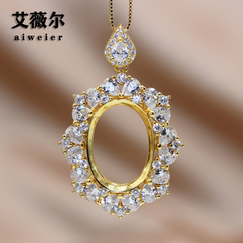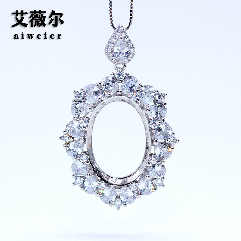吊坠托空托S925纯银新款银饰项坠加工包镶银托未镶嵌成品13*18