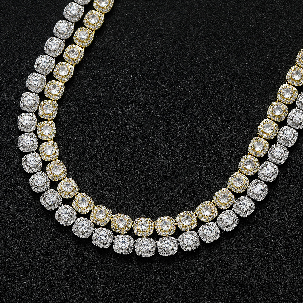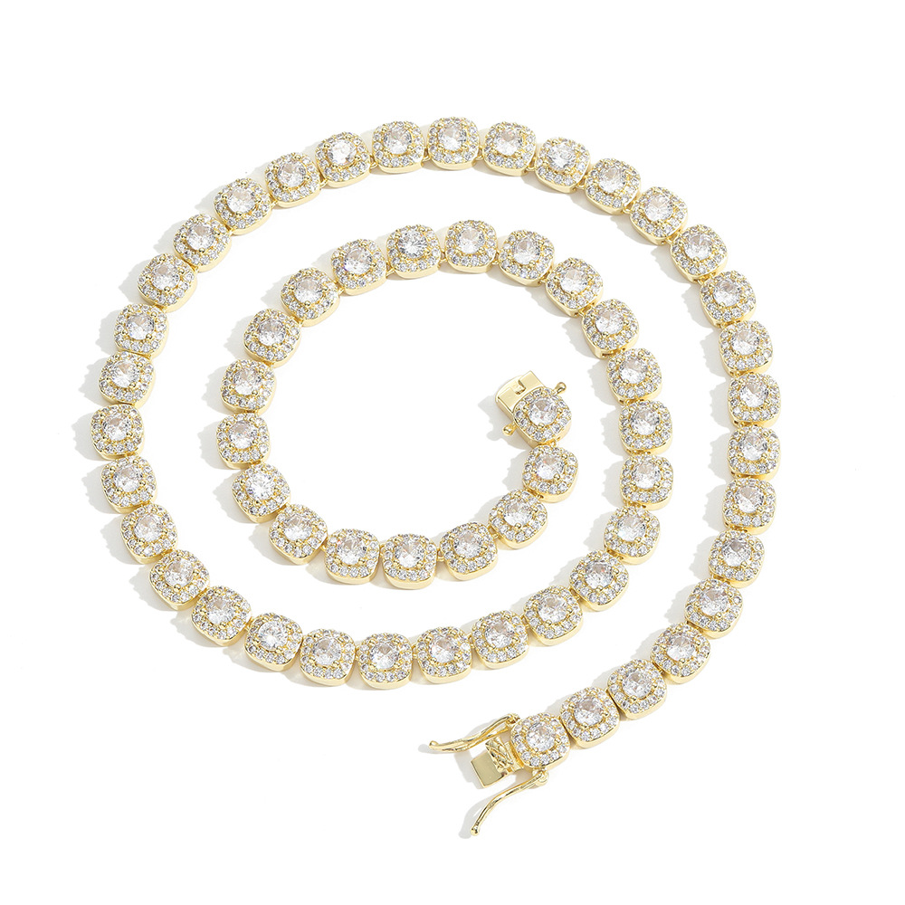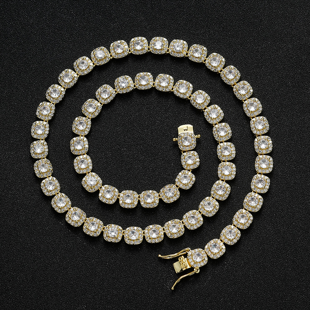 ICE BLING 8MM方块冰糖满钻锆石超闪项链 嘻哈个性街头HIPHOP说唱