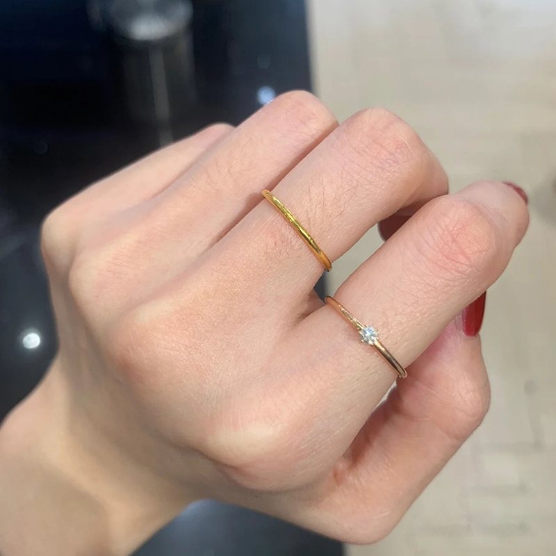 简约时尚素圈戒指女古法光圈指环小众设计感百搭食指戒叠戴素戒潮