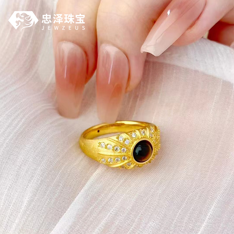 黄金点钻虎眼拉丝戒指女2024新款足金999戒子礼物送女友老婆礼物