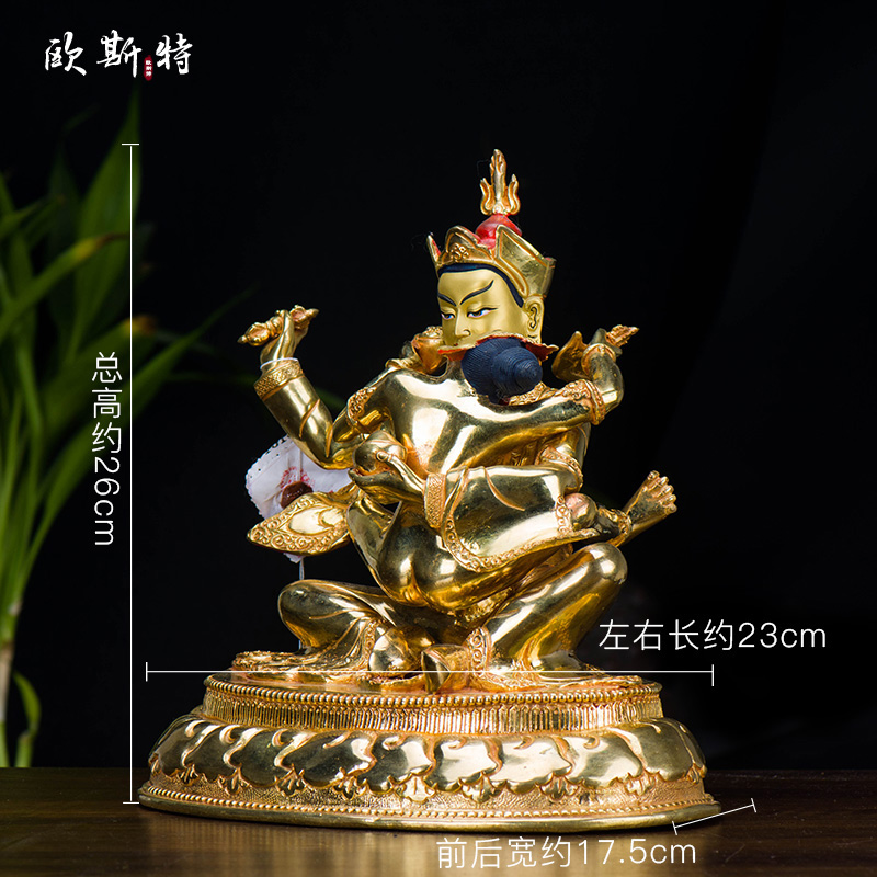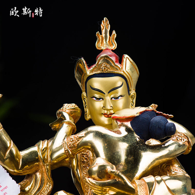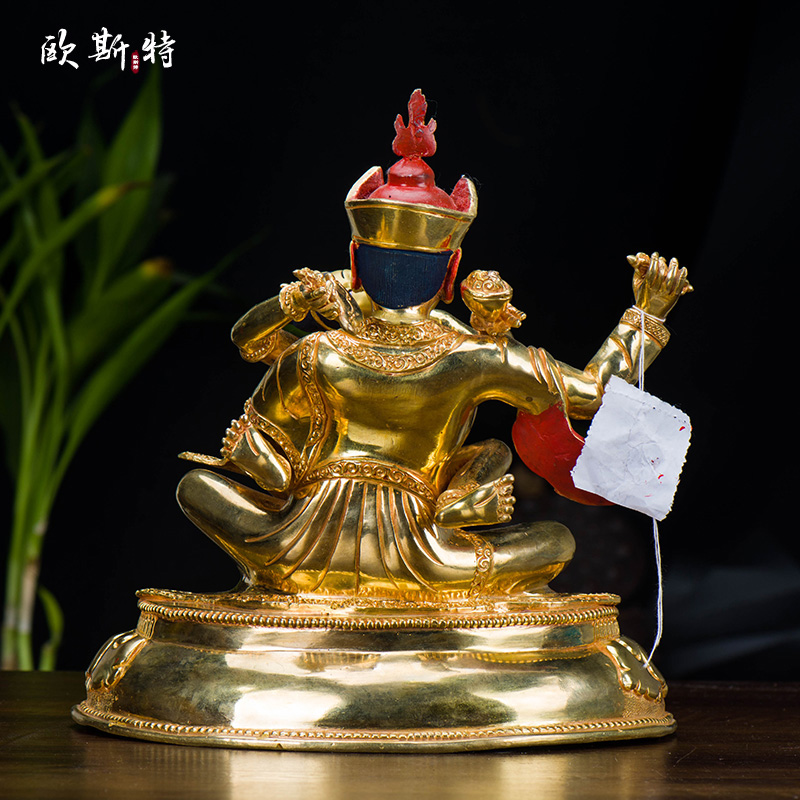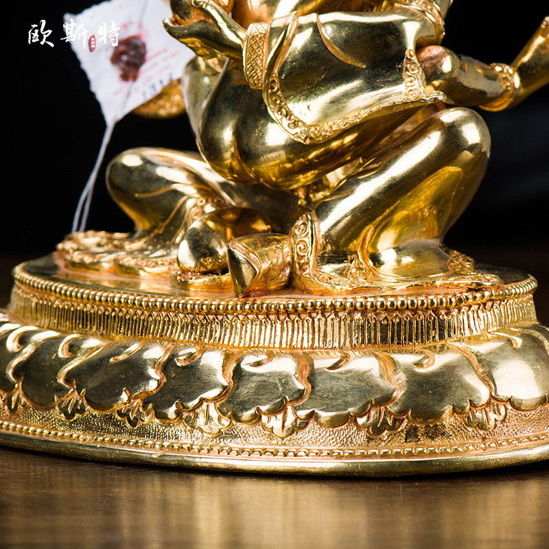 欧斯特莲花生大士铜像新中式尼泊尔手工铜全鎏金8寸客厅用品摆件