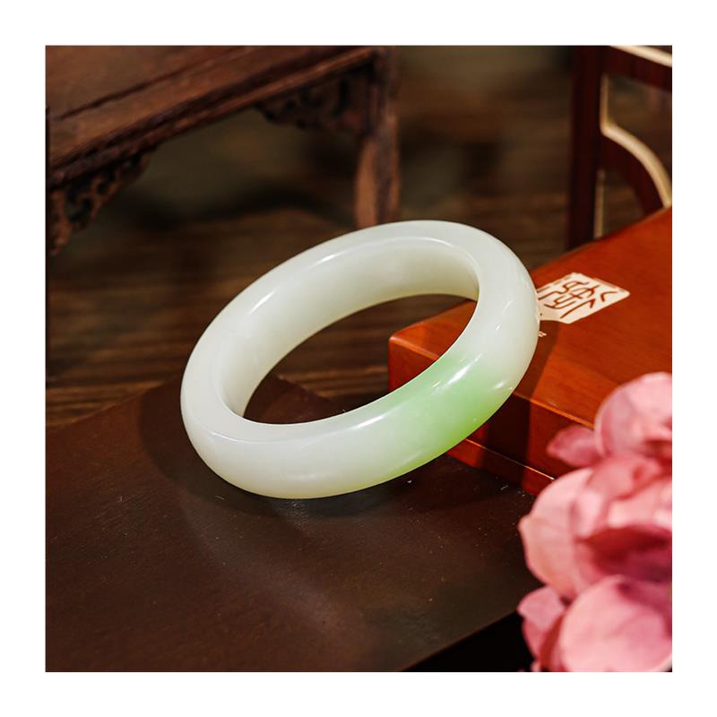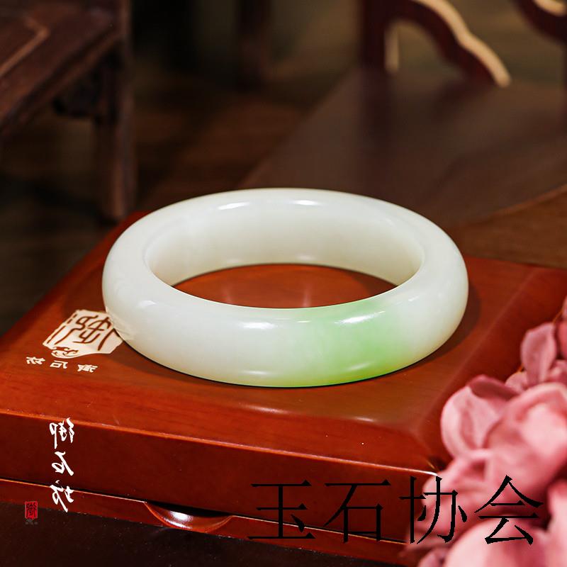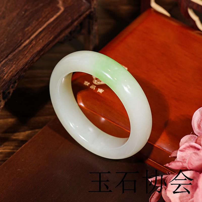 镇店之宝新疆和田玉手镯女白底青海老坑翠青料翠色飘花玉镯子证书
