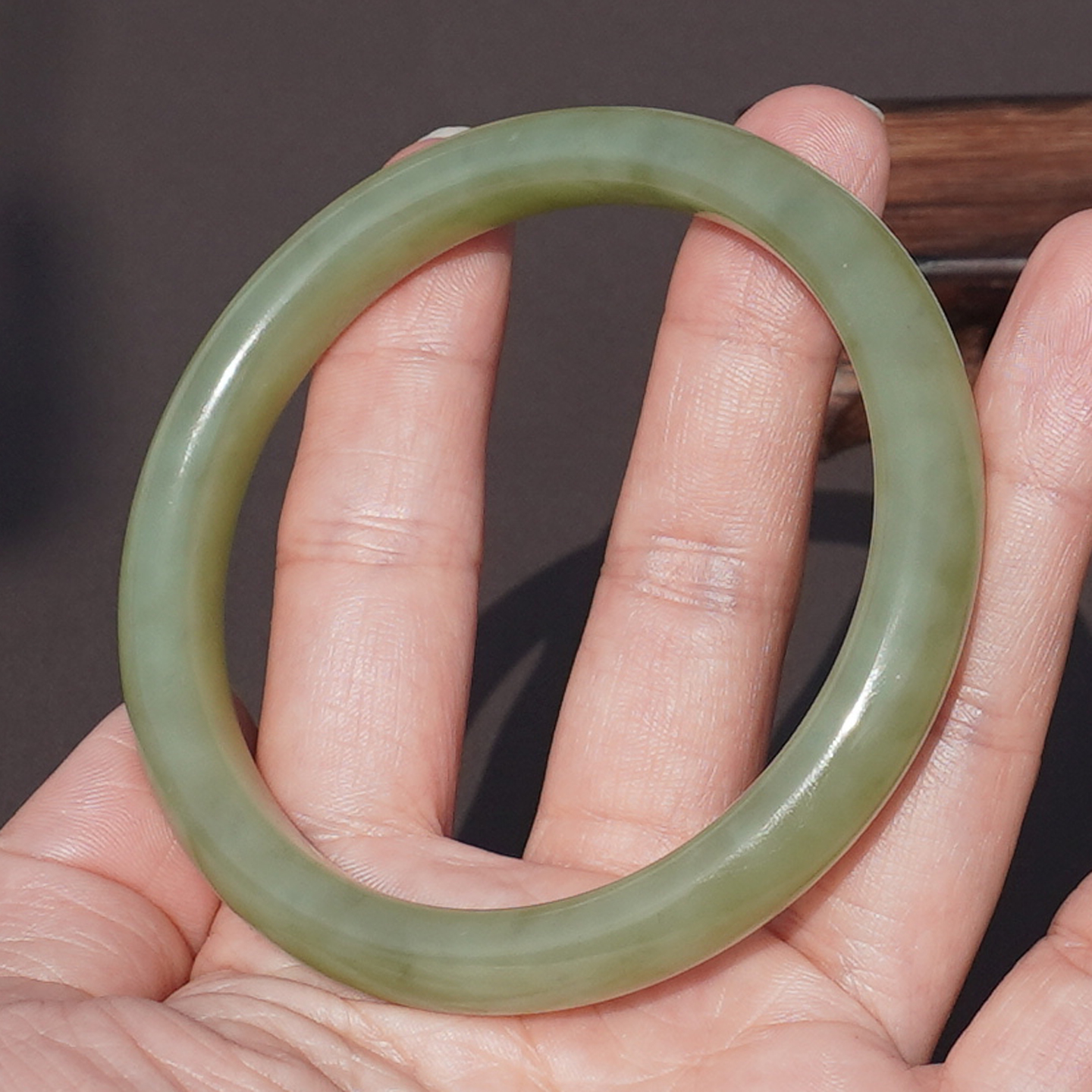 炸裂方言和田玉新疆若羌高脂细润青黄口料62mm细条时尚气质手镯A6