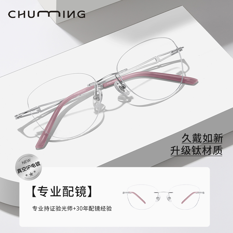 超轻钛清冷无框眼镜女款近视可配有度数适合方圆脸素颜显白眼睛架