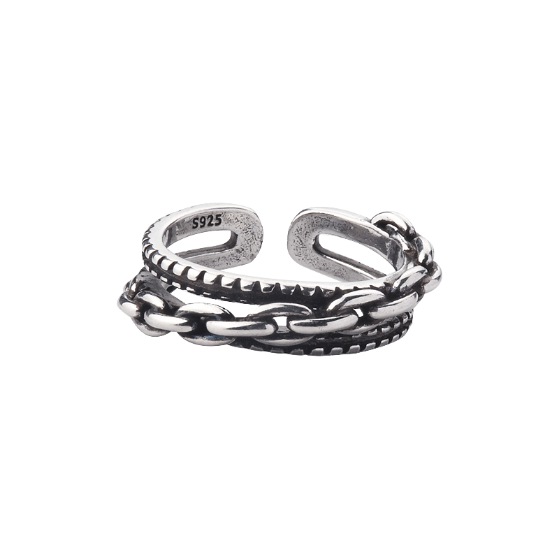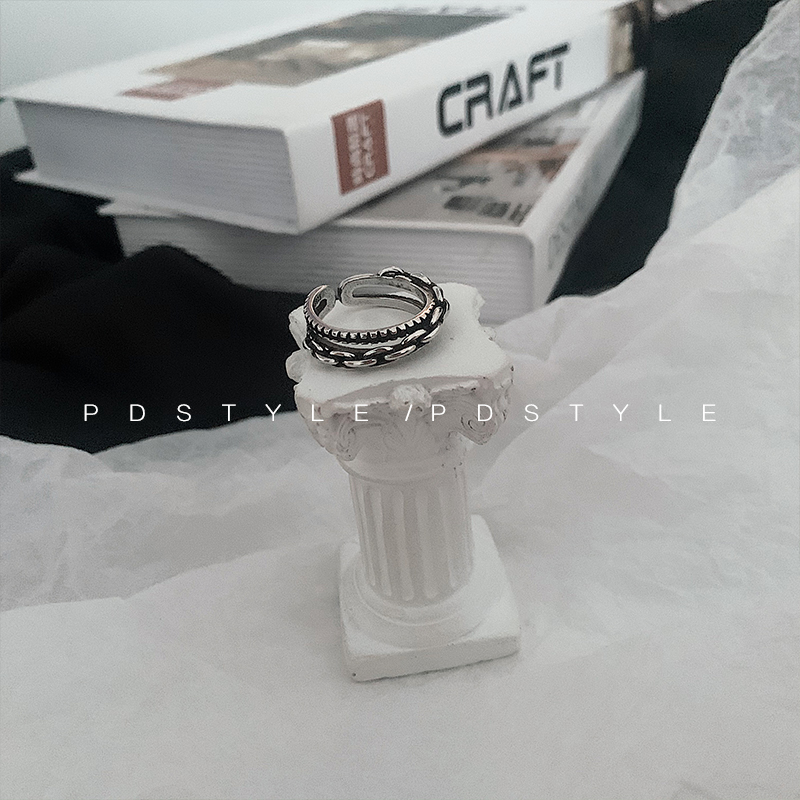 PDSTYLE 冷淡风个性交错链条ins戒指男女小众开口指环情侣百搭潮