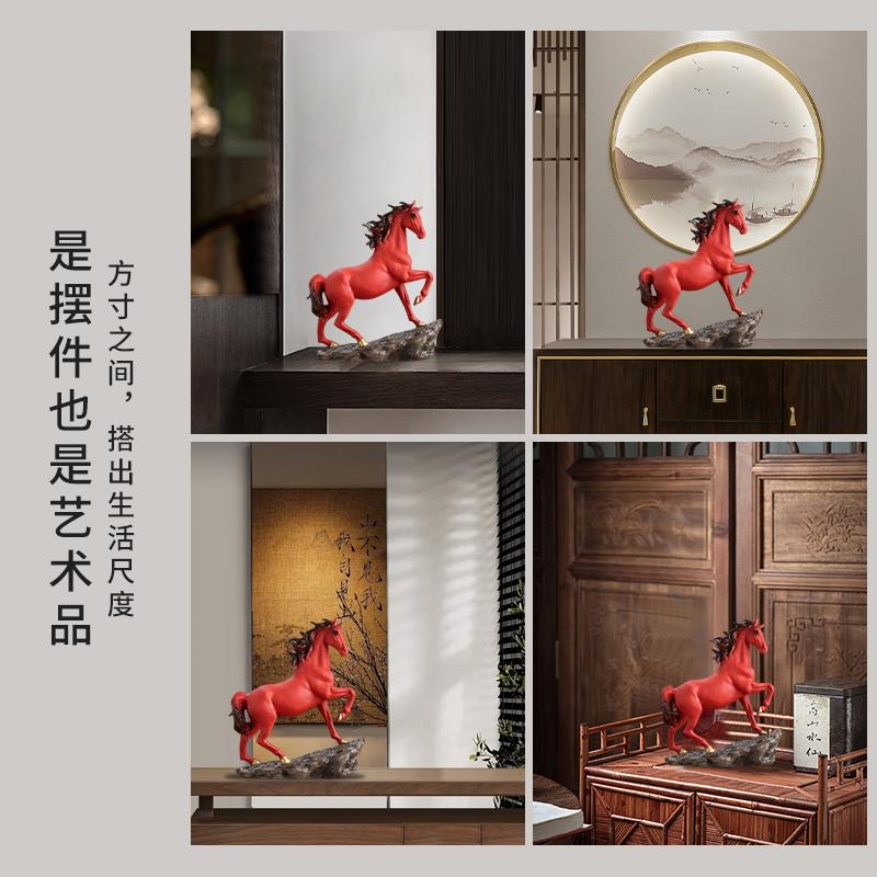 陶瓷红色马摆件客厅轻奢高档骏马生肖招财马到成功办公室风水装饰