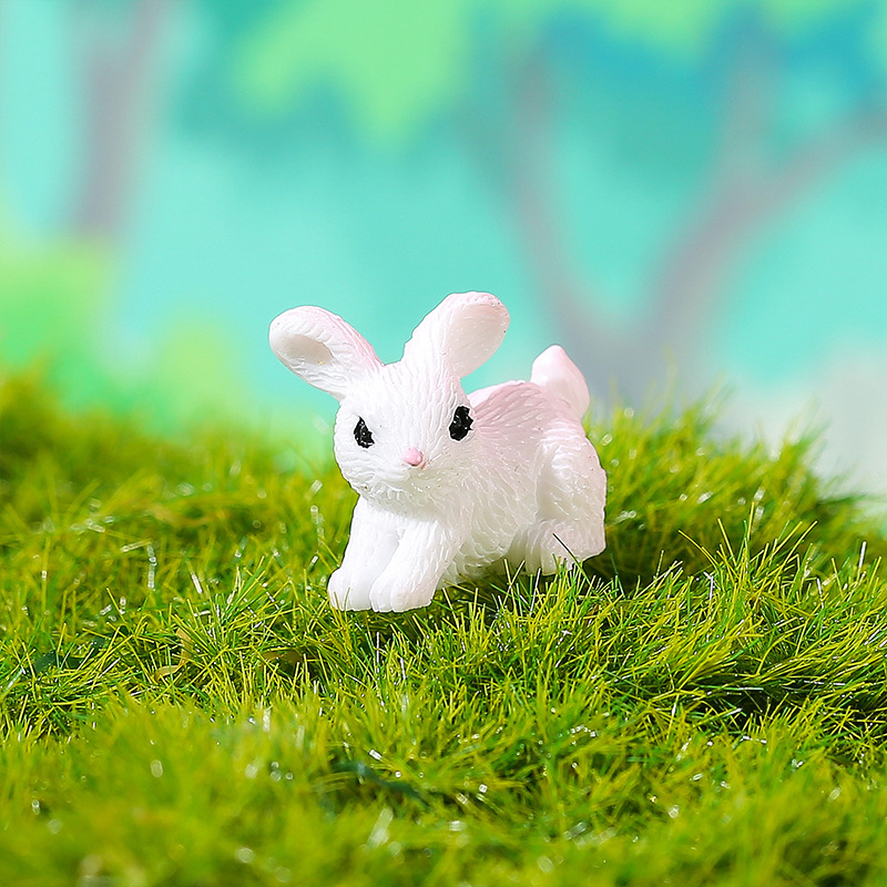 苔藓微景观创意可爱小动物彩色小兔公仔树脂装饰品微缩迷你小摆件