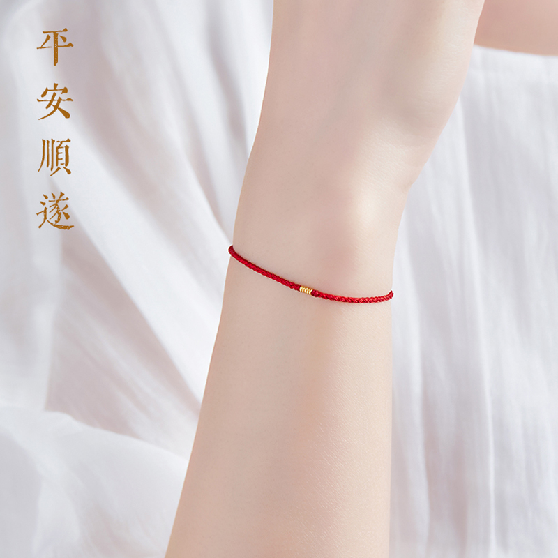 好运小红绳手链编织手绳本命年红色去霉运镀黄金脚链绳男女转运珠