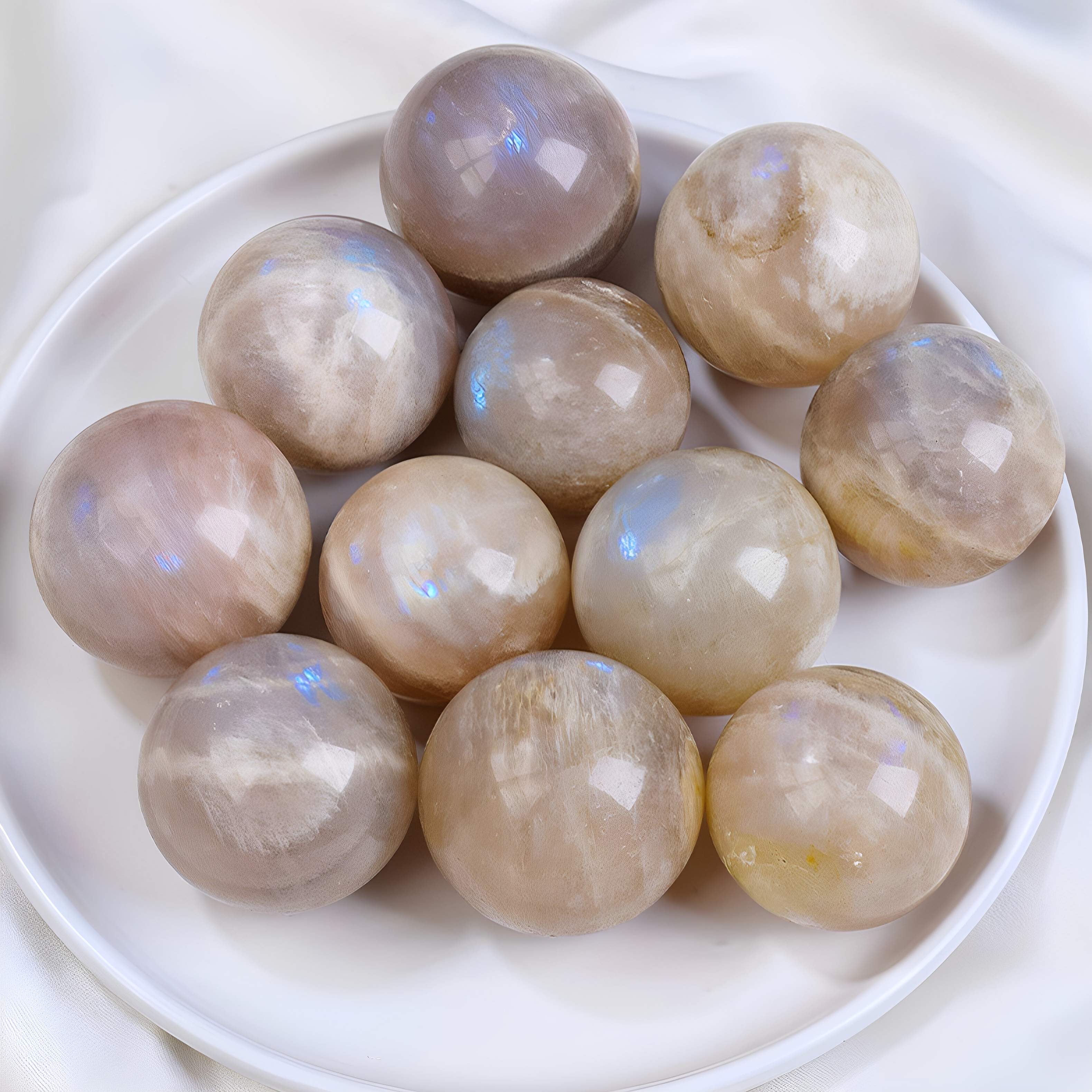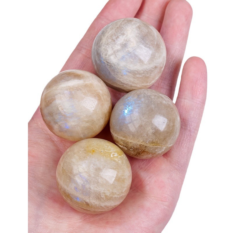 天然月光石水晶球 水晶原石打磨七星阵风水球家居桌面装饰摆件