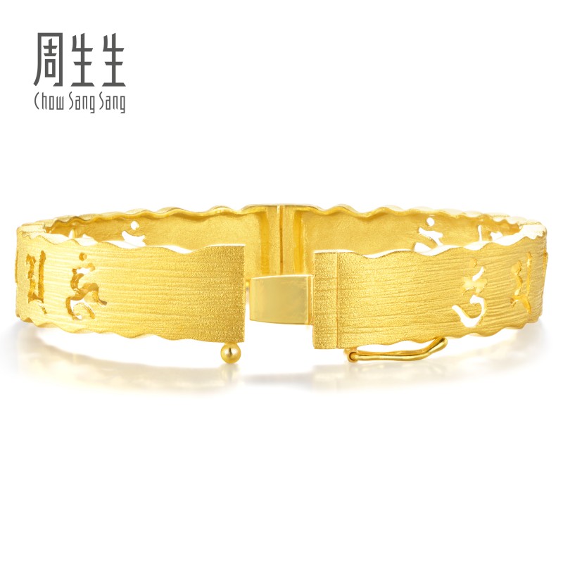 周生生文化祝福六字真言黄金手镯足金结婚金镯子女83215K预