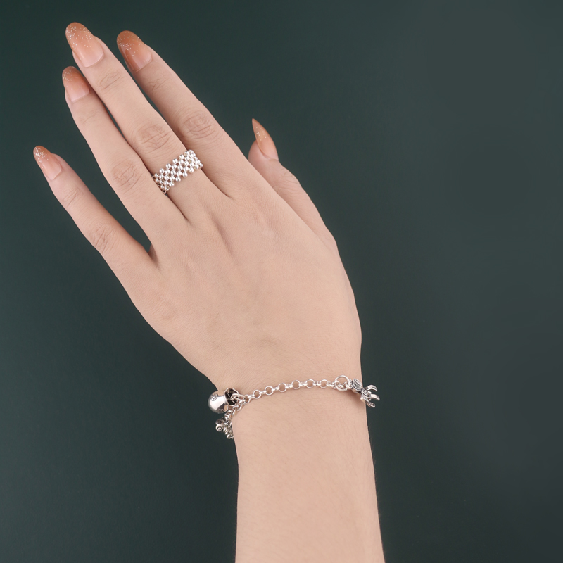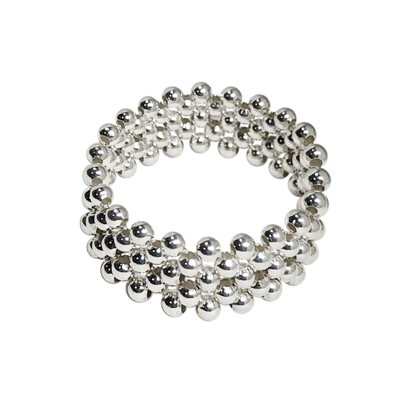 【升级版】990足银小银珠戒指五层弹力宽面 手工编织多圈纯银银饰