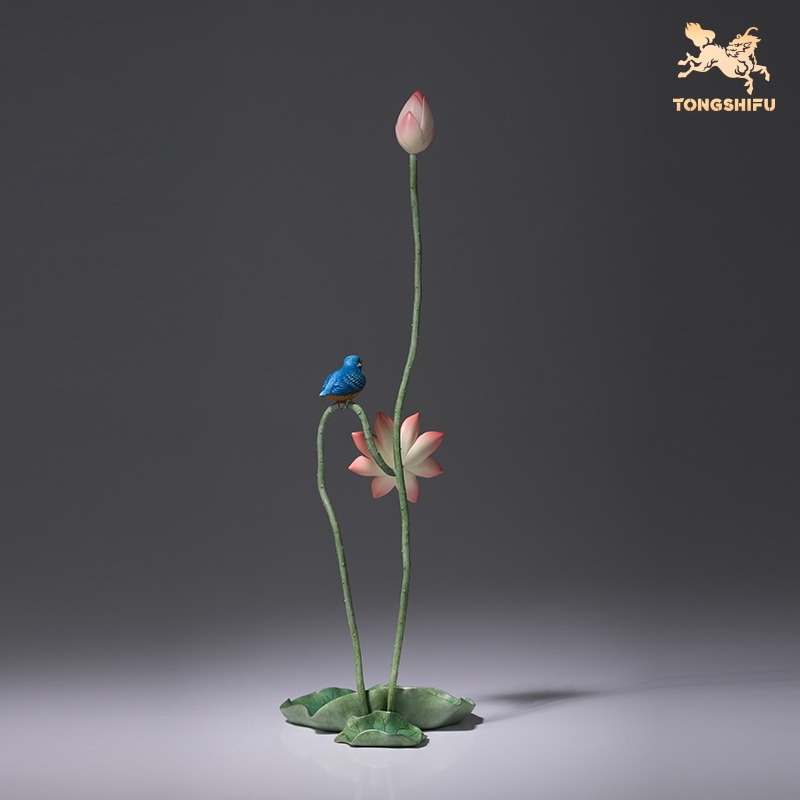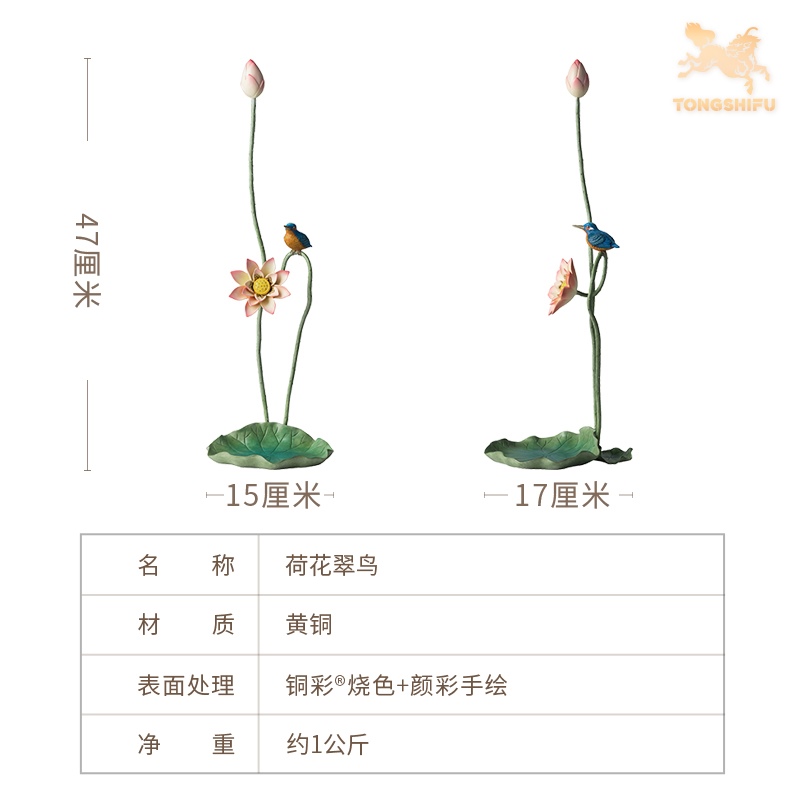 铜师傅《荷花翠鸟》客厅桌面铜摆件 莲花禅意摆件 家居装饰工艺品