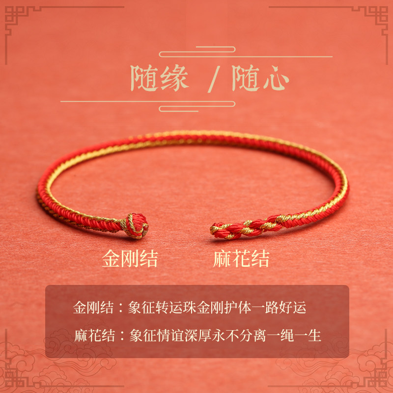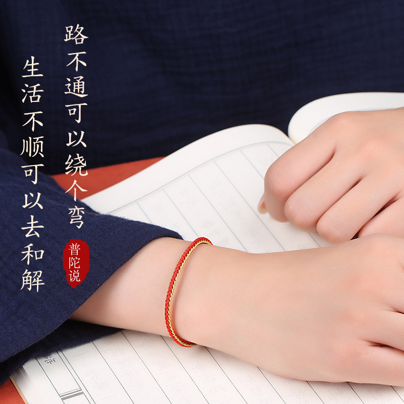 普陀山红色黄色手绳男手工编织金线红绳手链女金刚结细款手绳成品