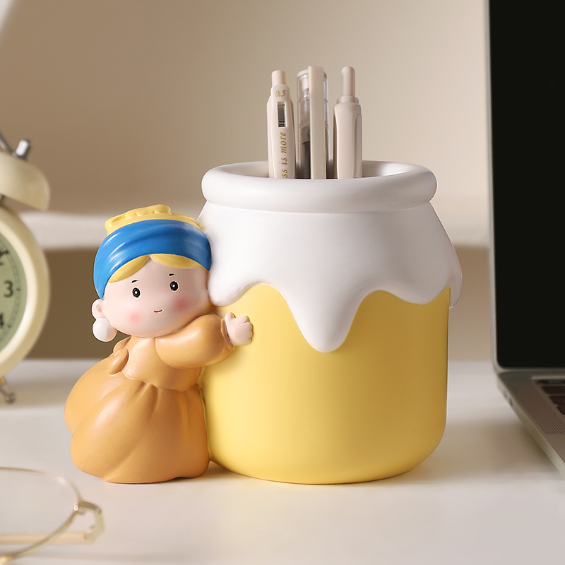 创意可爱戴珍珠耳环的少女笔筒摆件办公室桌面装饰实用生日礼物女